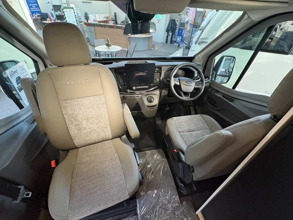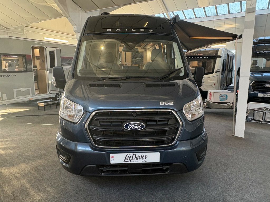 Year: 2026, Berth:2, External length: 5.98m / 19'7'', Maximum width: 2.49m / 8'2'', Height: 2.82m / 9'3'', Unladen weight: 2873kg, MTPLM: 3500kg, Engine 2.0 TDI 165ps, 8 speed automatic. Warranty: 3 year 100,000 mile Ford warranty including Ford Camper assist, 3 year Bailey and bodyshell warranty. This model is ideal for a couple who wish to go touring. The washroom is behind the cab which leaves the rest of the campervan as bright, airy living space. The seating area provides lots of comfortable space during the day, while at night it can be used as either two single beds or made into a double. Thanks to Bailey's grade 3 insulation and the efficient Truma heating system, the B62 can be used all year round both home and abroad. With your own onboard washing and cooking facilities you can be self reliant, and with the fitted fresh and waste water you can truly go off grid, helped by the roof mounted solar panel providing some power back to the battery. This demonstration model comes with the optional Stilo pack, which consists of Stilo soft furnishings along with matt black fixtures and fittings ( £299 extra ) 0 l fresh water tank, 105 amp leisure battery, 12, 2.0 165 bhp tdi, 8 speed automatic gearbox, abs, alloy wheels, blinds, cassette toilet, combi grill / oven, cruise control, directional roof mounted aerial, electric side step, esp, gas hob, heki rooflight, immobiliser, led lighting, loose fit carpets, parking sensors, rear single beds / double bed, reverse camera, roof mounted solar panel, shower, side washroom, soft furnishings, spare wheel, thule omnistor roof canopy, truma diesel heating, twin front airbags, usb sockets, windscreen & side blinds, 56l waste tank, 105amp agm leisure battery, 90 l compressor fridge, optional stilo pack, tpms, over cab sunroof, 8'2, 16'' Alloys