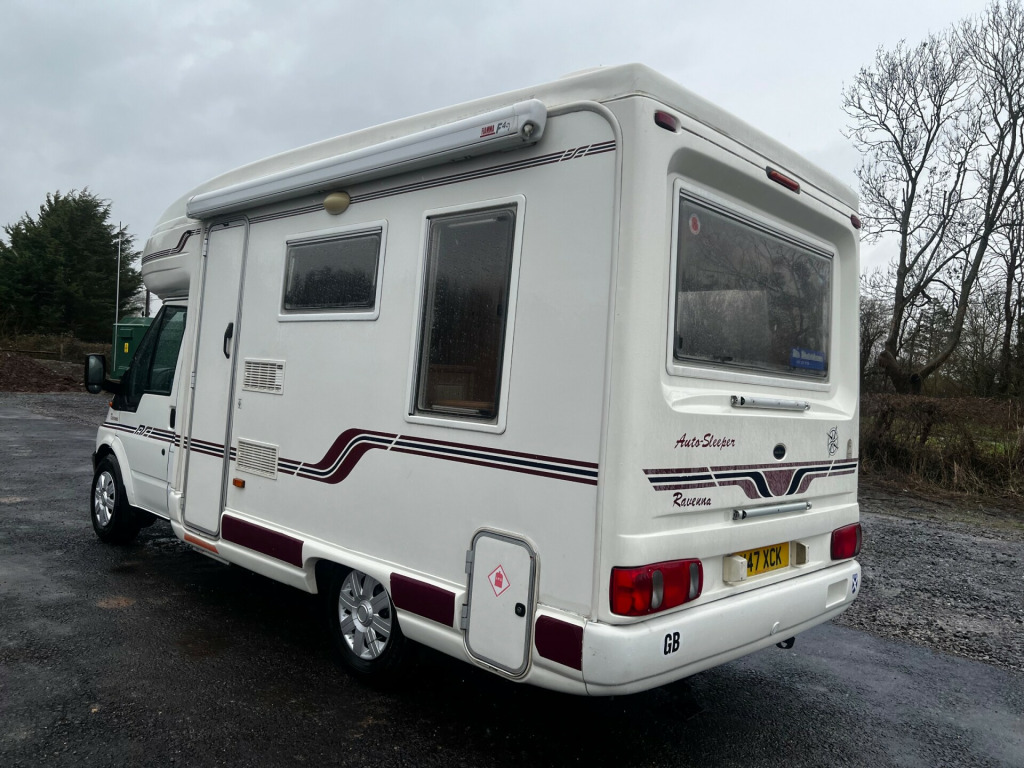 For sale is a 2001 Auto-Sleepers Ravenna motorhome with 90000 miles on the clock. This diesel vehicle has a new MOT and can accommodate 4 people with its 4 berths and rear belt. The motorhome has a gross weight of 3500kg. It comes with a service history, making it a reliable choice for your travels. Whether you're planning a weekend getaway or a long road trip, this motorhome offers comfort and practicality for your adventures. Supplied with a New mot. Habitation check. Gas safety certificate. Comprehensive warranty. Part exchange welcome. Open everyday. Location Bs246se ,