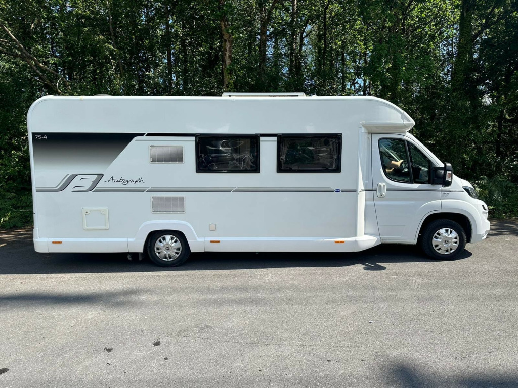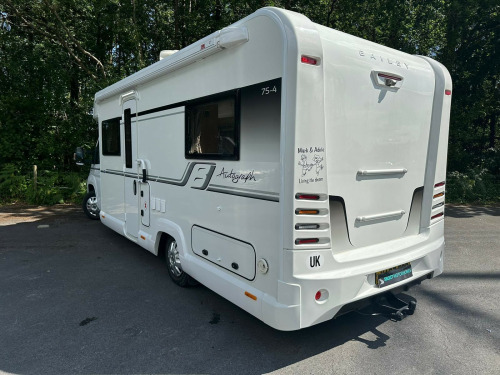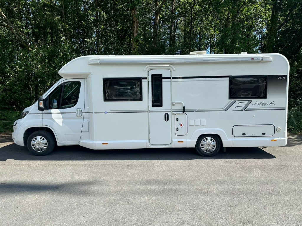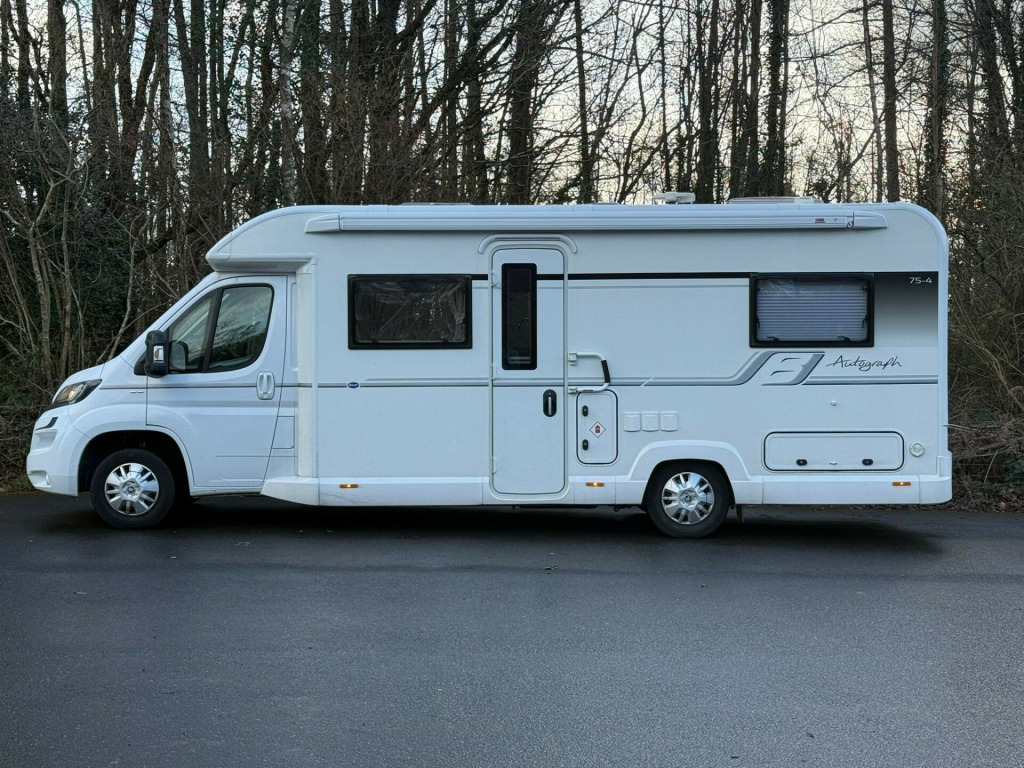 Select Motorhomes are extremely excited to share this beautiful bailey autograph 75-4. This stunning 7.5m motorhome has the ability to sleep and seat 4 people. This vehicle has such a light open feel. Its in immaculate condition and has only done 14883 miles in its lifetime, with only 2 owners from new. The gross weight of this vehicle is 3500kg. For any information give us a call on 01626 246666 or come and visit us at our showroom in Newton Abbot, Devon. ssette toilet, end bedroom, fixed bed, hand basin, rear washroom, shower, wardrobe, 3-burner hob, fridge freezer, grill, hob, microwave, oven, side kitchen, sink/drainer, alde heating system, awning, electric hook up, external bbq point, gaslow, loose carpets, solar panel, television