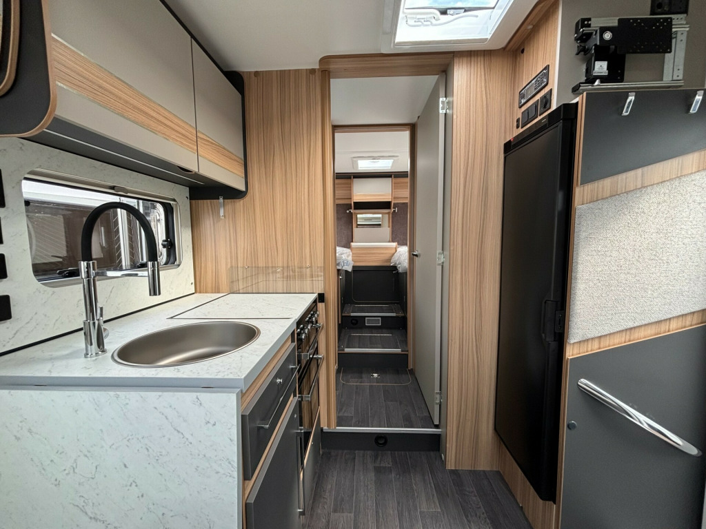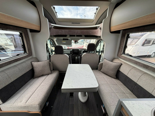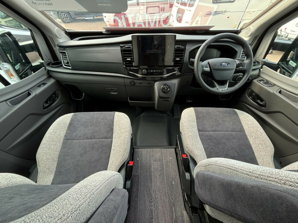 The Bailey Adamo is the perfect companion to every adventure. Smart design meets seamless practicality across three endlessly flexible layouts, each with exterior garage storage, for whatever you want to throw lifes way.Ford Transit 2.0 litre 165bhp engine with an automatic 8 speed gearbox.Fully adjustable upholstered driver and passenger Captain seats with twin upholstered armrests and integrated headrests.