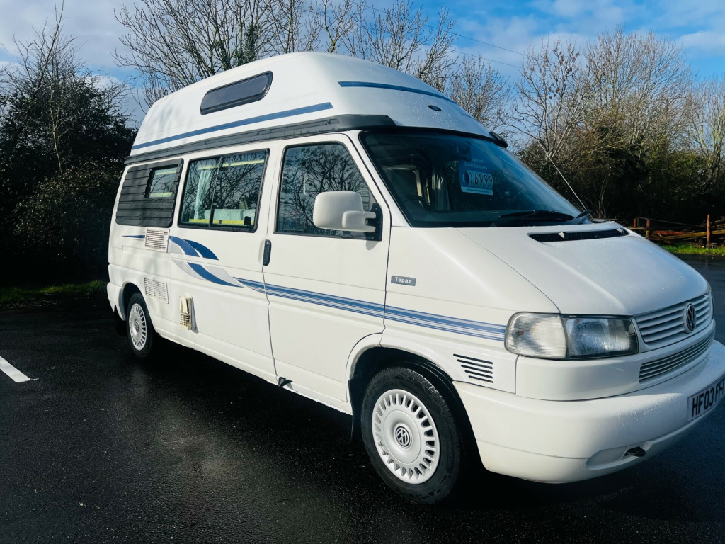 For sale is a 2003 Auto-Sleepers Topaz Van Conversion motorhome with a diesel engine and 98000 miles on the clock. This 2-berth vehicle, with a width of 1840mm and a gross weight of 2800kg, features a VW TDI engine and comes with a MOT that expires on 13/01/2027. The motorhome includes a shower, cassette toilet, and has recently had the cambelt replaced. Please note that the interior and exterior colours are not specified. This is a reliable and well-maintained motorhome that is perfect for long road trips and weekend getaways. Don't miss out on this fantastic opportunity to own a quality motorhome.Supplied with a New habitation check. Gas safety certificate. Comprehensive warranty. Part exchange welcome. No finance. Open everyday. Located Bs246se ,