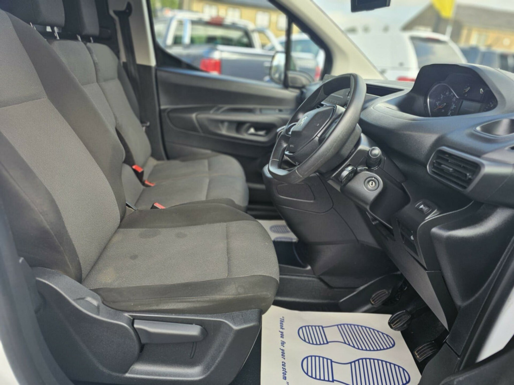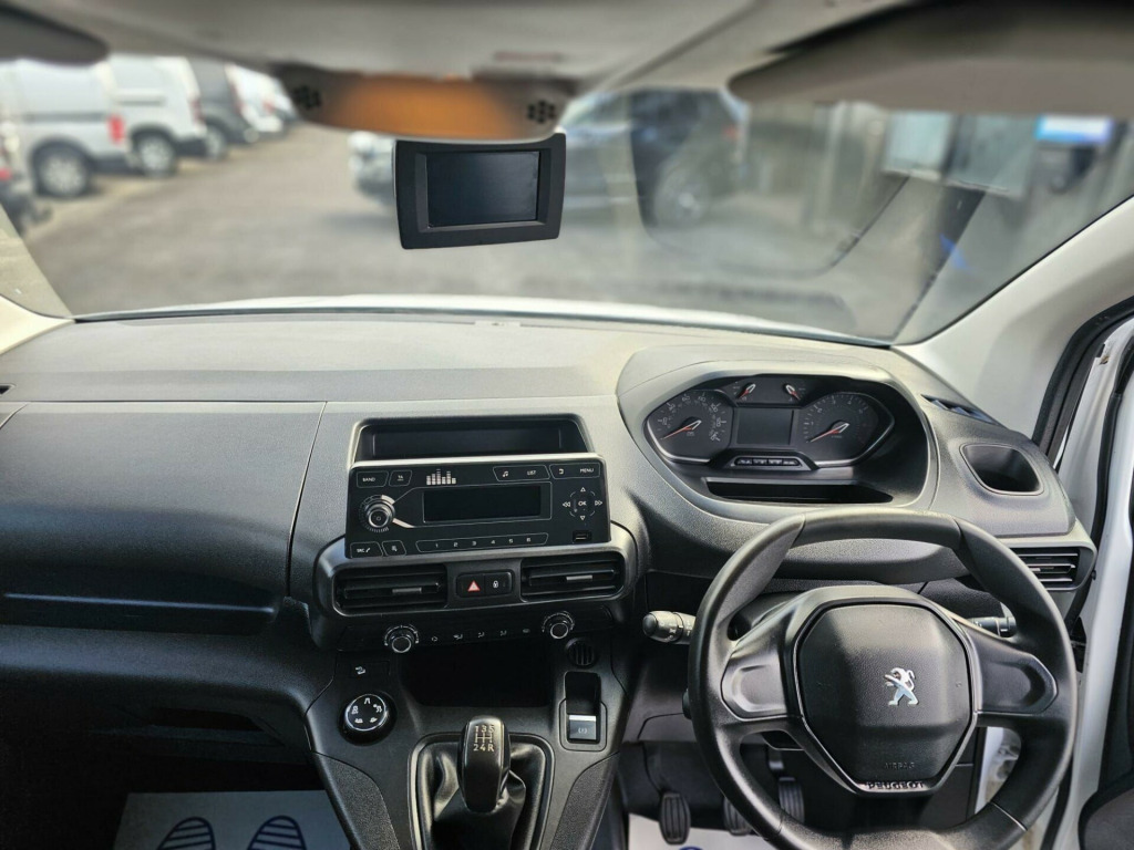 This 2021 Peugeot Partner boasts exceptionally low mileage for its age, having covered just 33,000 miles, and comes with a full service history for your peace of mind. As a 1.5 BlueHDi 1000 Grip Premium Standard Panel Van SWB Euro 6 5dr, this model offers a robust 1.5L diesel engine and meets Euro 6 emissions standards. You'll appreciate the convenience of rear parking sensors, height adjustable halogen headlights with automatic illumination and daytime running lights, and a DAB radio with Bluetooth handsfree and USB connectivity. The PEUGEOT i-Cockpit enhances your driving experience with a head up display and a compact steering wheel.This Partner is designed for efficiency and practicality, achieving an impressive 56 miles per gallon and producing low CO2 emissions, making it a cost effective choice. Its generous 3900 litre cargo volume provides ample space for your business needs. The inclusion of a 12 month MOT on purchase further assures you of its roadworthiness. These highlights demonstrate how this Peugeot Partner stands out from similar vehicles, offering a compelling combination of low running costs, excellent condition, and practical features. v socket - dashboard, 16in steel wheels with black centre cap, 6 floor mounted load securing rings, 6 tie down hooks in load area, 6 way adjustable drivers seat - lumbar adjustment and underseat storage, automatic activation of hazard warning lights on major deceleration, automatic electric parking brake, cup holders for driver and passenger - side of dashboard, dab radio with bluetooth handsfree and usb socket, dashboard mounted central locking push button and auto locking above 7mph, door mirrors - electrically adjustable, door opening warning and audible lights-on warning, driver seatbelt unfastened warning, drivers airbag, electric front windows with one-touch operation, electric power steering with reach and rake adjustable steering column, electronic stability control and abs with hill start assist - eba and ebfd, front door pockets with 1.5l bottle holder, front fog lights, full bulkhead, full size steel spare wheel, hard plastic floor protection in cabin, height adjustable halogen headlights with automatic illumination and daytime running lights, high level third brake light, loading pack, locking fuel filler cap, manually folding door mirrors, multi-flex modular folding passenger bench seat, multifunction on-board trip computer, nearside sliding side door, overhead storage shelf in cabin, overload indicator, peugeot i-cockpit with head-up display and compact steering wheel, peugeot connect sos and assistance, rear parking sensors, remote control central locking with deadlocks, rev counter with maintenance and gear efficiency indicators, rolling code transponder immobiliser - thatcham approved, side rubbing strips, two speed intermittent front wipers, tyre pressure monitoring system, unglazed asymmetric rear doors opening to 180 degrees, upper glove box storage compartment, visible vin number at base of windscreen, worksite pack
