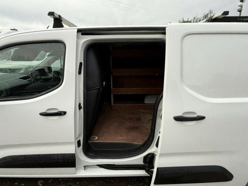 **EXCLUSIVE VIEWINGS BY APPOINTMENT ONLY**, , Visit our website to effortlessly complete a complimentary online finance applicationâ€secure your van financing today!, , **Standout Features:**, , - Fully loaded Peugeot Partner Professional Van, - Air Conditioning and CarPlay/Android, - Euro6 fully ULEZ compliant, - Sourced directly from a local company, - Genuine Mileage of just 75K, - Registered late in 2020, - Robust yet fuel-efficient 1.5 HDI 100 BHP EURO6 Engine, - Factory uprated suspension so can accommodate a higher payload than standard, , **Elevate Your Driving Experience:**, - HEATED SCREEN, - CRUISE CONTROL, - Multi-Functional Steering Wheel, - Electric Windows , - REAR PARKING SENSORS with an On-Board PARKPILOT Display, - Overhead Storage, - Bluetooth Comms Kit, - Traction Control, - Full Bulkhead With Load Hatch, - On-Board Trip Computer, - Remote Central Locking, - DAB Radio, - Adjustable Steering, - Side Loading Door, - Solid Barn Doors, - Fully Ply Lined Interior With Custom Shelving, - Front Fog Lights, - High Quality Roof Rack, , **Unbeatable Value:**, - Viewings exclusively by appointment, - Stated price is plus VAT, , **Offering Includes:**, - Pre-Delivery Inspection, - 3-month RAC Parts and Labour Warranty (extendable up to 12 months), - FREE 12 MONTHS RAC BREAKDOWN COVER, - Engine Service if applicable, - Qualifies for up to 3 years RAC extended warrantyâ€please ask for further details, , **Additional Assurance:**, - Fully HPI Clear (Certificate Available), - Flexible finance packages tailored to suit all budgets, , **Purchase with Confidence:**, - Buy with confidence from an establishment with over 20 years of experience.
