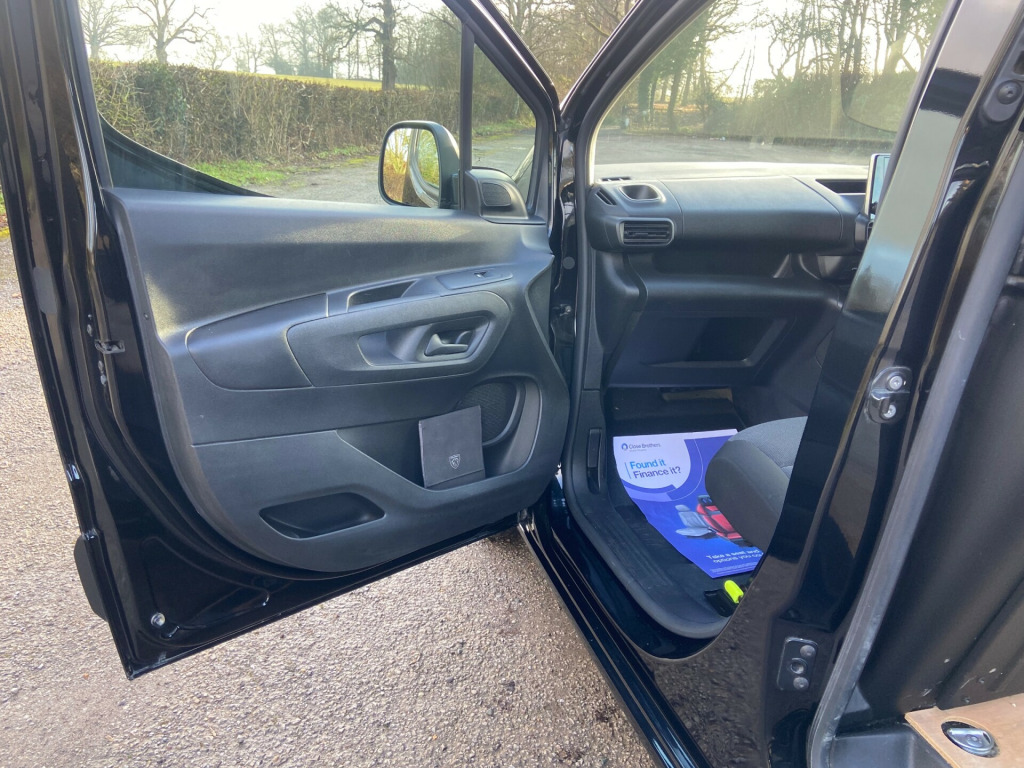 2021 ' 71 ' PEUGEOT PARTNER 1000 1.5 BHDI L1 PROF 100 IN BLACK , 1 OWNER , MAIN DEALER SERVICE HISTORY , 62000 MILES , PAS , ABS , AIR CONDITIONING , CAR PLAY , ELECTRIC WINDOWS , ELECTRIC MIRRORS , CRUISE CONTROL , PARKING SENSORS , SIDE LOADING DOOR + MORE , FULL FINANCE FACILITIES AVAILABLE **** £9995 + VAT **** , v socket - dashboard, 8in capacitive colour touchscreen with connect dab radio - bluetooth handsfree and usb socket, peugeot i-cockpit with head-up display and compact steering wheel, 16in steel wheels with rakiura wheel cover, door mirrors - electrically folding with temperature sensor, electric front windows with one-touch operation, full size steel spare wheel, locking fuel filler cap, side rubbing strips, two speed intermittent front wipers, 6 floor mounted load securing rings, 6 way adjustable drivers seat - lumbar adjustment and underseat storage, air conditioning, cup holders for driver and passenger - side of dashboard, front door pockets with 1.5l bottle holder, full bulkhead, hard plastic floor protection in cabin, multi-flex modular folding passenger bench seat, nearside sliding side door, overhead storage shelf in cabin, unglazed asymmetric rear doors opening to 180 degrees, upper glove box storage compartment, automatic activation of hazard warning lights on major deceleration, automatic electric parking brake, dashboard mounted central locking push button and auto locking above 7mph, driver and passenger seatbelt unfastened warning, drivers airbag, electronic stability control and abs with hill start assist - eba and ebfd, perimetric and volumetric thatcham category 1 approved alarm, remote control central locking with deadlocks, rolling code transponder immobiliser - thatcham approved, visible vin number at base of windscreen, cruise control with programmable speed limiter, door opening warning and audible lights-on warning, electric power steering with reach and rake adjustable steering column, multifunction on-board trip computer, rear parking sensors, rev counter with maintenance and gear efficiency indicators, tyre pressure monitoring system, front fog lights, height adjustable halogen headlights with automatic illumination and daytime running lights, high level third brake light