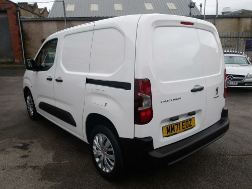 This 2022 Peugeot Partner van boasts a clear vehicle history check and an MOT valid until December 2026, offering peace of mind for its next owner. This Professional Premium Standard Panel Van SWB model is equipped with a 1.5L BlueHDi diesel engine, meeting Euro 6 emission standards. It comes with a 6 month warranty and partial service history. Notable features include Air Conditioning, Height Adjustable Halogen Headlights with Automatic Illumination and Daytime Running Lights, and Rear Parking Sensors for easier manoeuvring. Inside, youll find the PEUGEOT i-Cockpit with a Head-Up Display and Compact Steering Wheel, alongside an 8in Capacitive Colour Touchscreen featuring Connect DAB Radio, Bluetooth handsfree, and a USB socket. The Peugeot Partner stands out with its impressive fuel economy, achieving up to 56 mpg, and low CO2 emissions, making it an economical choice. Its generous 3900 litre cargo volume highlights its capability for carrying substantial loads, offering more space than many comparable vehicles. These combined attributes make this van a practical and efficient option for your business needs.
