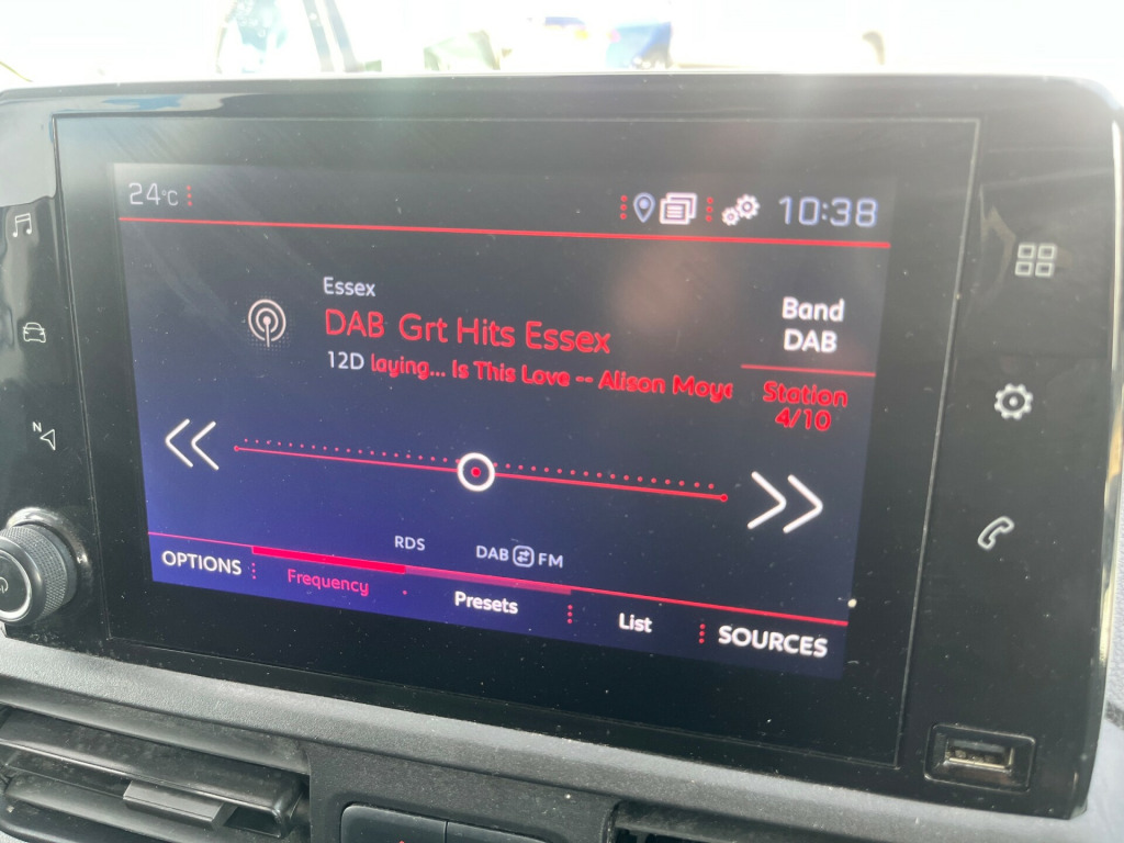 * Arriving 11/9 *, v socket - dashboard, 8in capacitive colour touchscreen with connect dab radio - bluetooth handsfree and usb socket, peugeot i-cockpit with head-up display and compact steering wheel, peugeot connect sos and assistance, 16in steel wheels with rakiura wheel cover, door mirrors - electrically folding with temperature sensor, electric front windows with one-touch operation, full size steel spare wheel, locking fuel filler cap, side rubbing strips, two speed intermittent front wipers, 6 floor mounted load securing rings, 6 tie down hooks in load area, 6 way adjustable drivers seat - lumbar adjustment and underseat storage, air conditioning, cup holders for driver and passenger - side of dashboard, front door pockets with 1.5l bottle holder, full bulkhead, hard plastic floor protection in cabin, multi-flex modular folding passenger bench seat, nearside sliding side door, overhead storage shelf in cabin, unglazed asymmetric rear doors opening to 180 degrees, upper glove box storage compartment, automatic activation of hazard warning lights on major deceleration, automatic electric parking brake, dashboard mounted central locking push button and auto locking above 7mph, driver seatbelt unfastened warning, drivers airbag, electronic stability control and abs with hill start assist - eba and ebfd, perimetric and volumetric thatcham category 1 approved alarm, remote control central locking with deadlocks, rolling code transponder immobiliser - thatcham approved, visible vin number at base of windscreen, cruise control with programmable speed limiter, door opening warning and audible lights-on warning, electric power steering with reach and rake adjustable steering column, multifunction on-board trip computer, rear parking sensors, rev counter with maintenance and gear efficiency indicators, tyre pressure monitoring system, front fog lights, height adjustable halogen headlights with automatic illumination and daytime running lights, high level third brake light