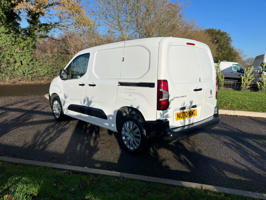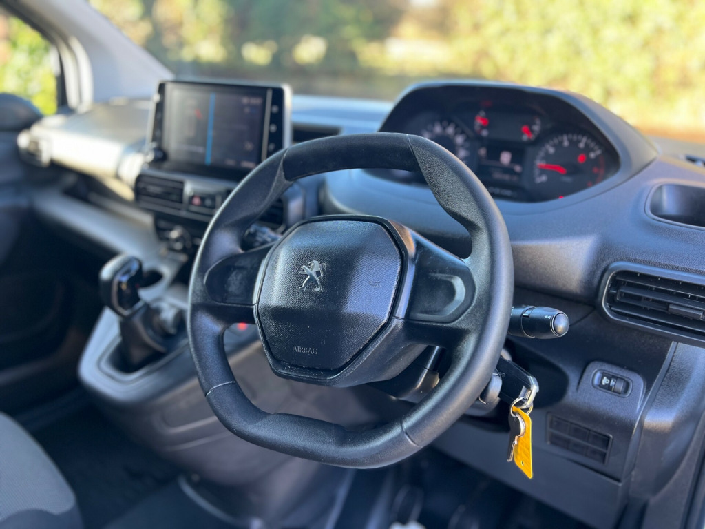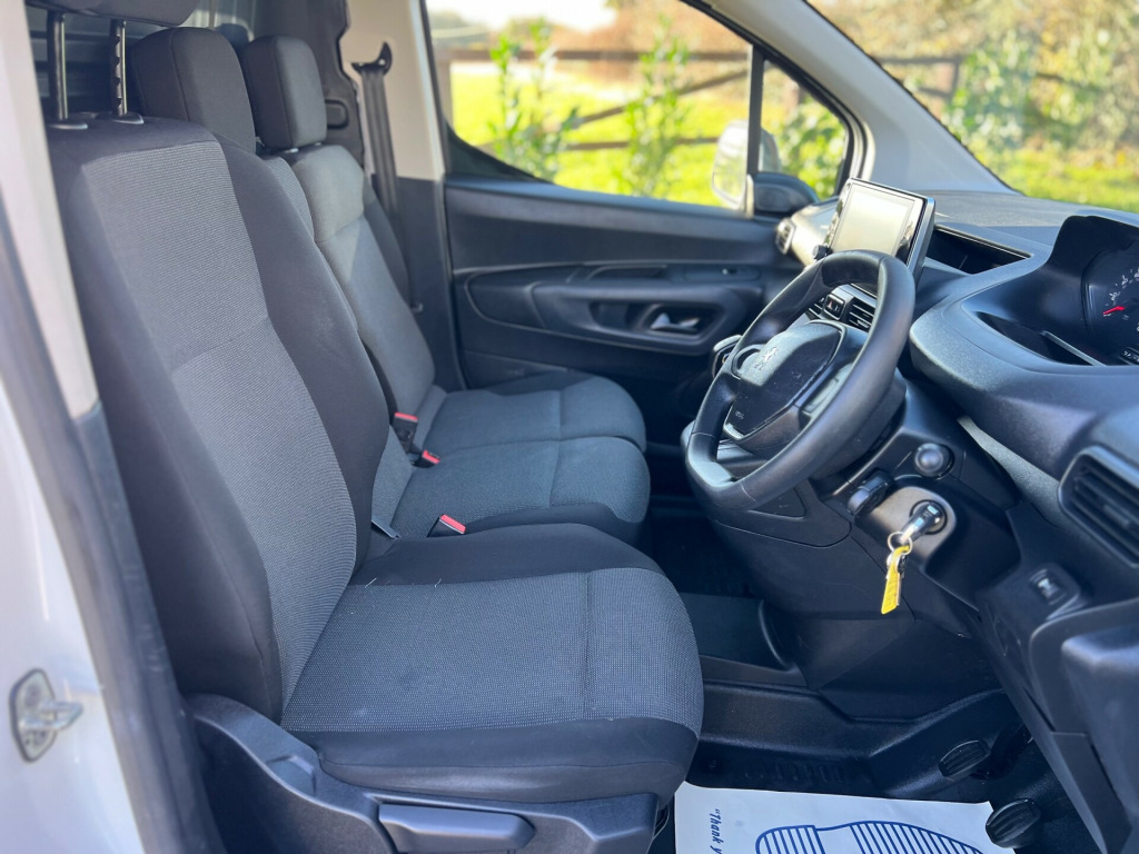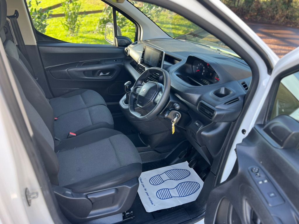 One owner vehicle with full service history. Low rate finance and leasing optinos available.Introducing the 2020 Peugeot Partner 1.5 BlueHDi 1000 Professional Standard Panel Van with a powerful diesel engine boasting 100 bhp, perfect for all your commercial needs. With only 99000 miles on the clock, this reliable panel van comes with a valid MOT until 19/10/2026 and is ULEZ compliant, making it ideal for city driving. Featuring 3 seats and 5 doors, this spacious van also has a gross weight of 2370kg, ensuring it can handle any load. The interior is equipped with modern features such as a 12V Power Socket, 8in Capacitive Colour Touchscreen, Peugeot i-Cockpit with Head-Up Display, and Peugeot Connect SOS and Assistance, providing both comfort and convenience. With 16in Steel Wheels and Rakiura Wheel Cover, this van is ready to hit the road in style. Don't miss out on this reliable and efficient commercial vehicle. Price is plus vat, v power socket - dashboard, 8in capacitive colour touchscreen with connect dab radio - bluetooth handsfree and usb socket, peugeot i-cockpit with head-up display and compact steering wheel, peugeot connect sos and assistance, 16in steel wheels with rakiura wheel cover, door mirrors - electrically folding with temperature sensor, front electric windows one touch operation, full size steel spare wheel, locking fuel filler cap, side rubbing strips, two speed intermittent front wipers, 6 floor mounted load securing rings, 6 tie down hooks in load area, 6 way adjustable drivers seat - lumbar adjustment and underseat storage, air conditioning, cup holders for driver and passenger - side of dashboard, door pockets - front - including storage for 1.5l bottles, full bulkhead, hard plastic floor protection in cabin, multi-flex modular folding passenger bench seat, nearside sliding side door, overhead storage shelf in cabin, rear doors - 180 degree opening-asymmetric solid, upper glove box storage compartment, automatic activation of hazard warning lights on major deceleration, automatic electric parking brake, dashboard mounted central locking push button and auto locking above 7mph, driver seatbelt unfastened warning, drivers airbag, electronic stability control and abs with hill start assist - eba and ebfd, perimetric and volumetric thatcham category 1 approved alarm, remote control central locking with deadlocks, rolling code transponder immobiliser - thatcham approved, visible vin number at base of windscreen, cruise control with programmable speed limiter, door opening warning and audible lights-on warning, electric power steering with reach and rake adjustable steering column, multifunction trip computer, rear parking sensors, rev counter with maintenance and gear efficiency indicators, tyre pressure monitoring system, front fog lights, height adjustable halogen headlights with automatic illumination and daytime running lights, high level third brake light