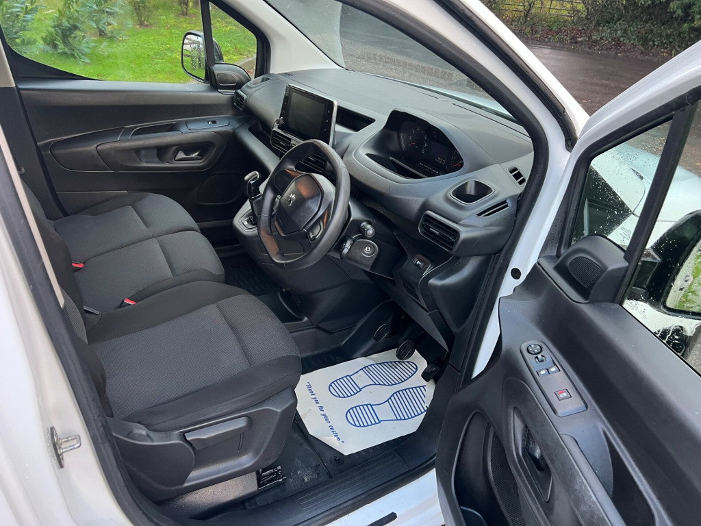 This 2021 Peugeot Partner 1.5 BlueHDi 1000 Professional Standard Panel Van is the perfect commercial vehicle with only 44074 miles on the clock. This diesel panel van comes with 5 doors, 3 seats, and is ULEZ compliant, making it perfect for city driving. The MOT expires on 13/08/2026, giving you peace of mind for years to come. With a gross weight of 2370kg, this van is capable of handling heavy loads with ease. The interior features include a 12V Socket on the dashboard, 8in Capacitive Colour Touchscreen with Connect DAB Radio, Bluetooth Handsfree, and USB Socket, PEUGEOT i-Cockpit with Head-Up Display, Compact Steering Wheel, and Peugeot Connect SOS and Assistance. The exterior boasts 16in Steel Wheels with Rakiura Wheel Cover, adding to the van's sleek appearance. Don't miss out on this reliable and efficient commercial vehicle. Finance available, please call for details. , v socket - dashboard, 8in capacitive colour touchscreen with connect dab radio - bluetooth handsfree and usb socket, peugeot i-cockpit with head-up display and compact steering wheel, peugeot connect sos and assistance, 16in steel wheels with rakiura wheel cover, door mirrors - electrically folding with temperature sensor, electric front windows with one-touch operation, full size steel spare wheel, locking fuel filler cap, side rubbing strips, two speed intermittent front wipers, 6 floor mounted load securing rings, 6 tie down hooks in load area, 6 way adjustable drivers seat - lumbar adjustment and underseat storage, air conditioning, cup holders for driver and passenger - side of dashboard, front door pockets with 1.5l bottle holder, full bulkhead, hard plastic floor protection in cabin, multi-flex modular folding passenger bench seat, nearside sliding side door, overhead storage shelf in cabin, unglazed asymmetric rear doors opening to 180 degrees, upper glove box storage compartment, automatic activation of hazard warning lights on major deceleration, automatic electric parking brake, dashboard mounted central locking push button and auto locking above 7mph, driver seatbelt unfastened warning, drivers airbag, electronic stability control and abs with hill start assist - eba and ebfd, perimetric and volumetric thatcham category 1 approved alarm, remote control central locking with deadlocks, rolling code transponder immobiliser - thatcham approved, visible vin number at base of windscreen, cruise control with programmable speed limiter, door opening warning and audible lights-on warning, electric power steering with reach and rake adjustable steering column, multifunction on-board trip computer, rear parking sensors, rev counter with maintenance and gear efficiency indicators, tyre pressure monitoring system, front fog lights, height adjustable halogen headlights with automatic illumination and daytime running lights, high level third brake light