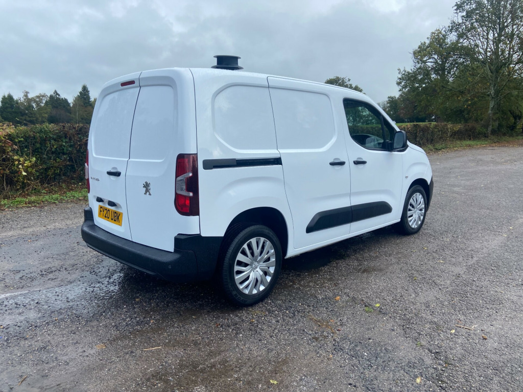 2020 ' 20 ' PEUGEOT PARTNER PROFESSIONAL 1.5 D 100 L1 IN WHITE , 1 OWNER , FULL SERVICE HISTORY , ULEZ COMPLIANT , ABS , PAS , AIR CONDITIONING , CAR PLAY, HDD SAT NAV , DOUBLE PASSENGER SEAT , CRUISE CONTROL , ELECTRIC WINDOWS , ELECTRIC MIRRORS , REAR PARKING SENSORS , TWIN SIDE LOADING DOORS + MORE , FULL FINANCE FACILITIES AVAILABLE **** £8995 + VAT **** , v power socket - dashboard, 8in capacitive colour touchscreen with connect dab radio - bluetooth handsfree and usb socket, peugeot i-cockpit with head-up display and compact steering wheel, peugeot connect sos and assistance, 16in steel wheels with rakiura wheel cover, door mirrors - electrically folding with temperature sensor, front electric windows one touch operation, full size steel spare wheel, locking fuel filler cap, side rubbing strips, two speed intermittent front wipers, 6 floor mounted load securing rings, 6 tie down hooks in load area, 6 way adjustable drivers seat - lumbar adjustment and underseat storage, air conditioning, cup holders for driver and passenger - side of dashboard, door pockets - front - including storage for 1.5l bottles, full bulkhead, hard plastic floor protection in cabin, multi-flex modular folding passenger bench seat, nearside sliding side door, overhead storage shelf in cabin, rear doors - 180 degree opening-asymmetric solid, upper glove box storage compartment, automatic activation of hazard warning lights on major deceleration, automatic electric parking brake, dashboard mounted central locking push button and auto locking above 7mph, driver seatbelt unfastened warning, drivers airbag, electronic stability control and abs with hill start assist - eba and ebfd, perimetric and volumetric thatcham category 1 approved alarm, remote control central locking with deadlocks, rolling code transponder immobiliser - thatcham approved, visible vin number at base of windscreen, cruise control with programmable speed limiter, door opening warning and audible lights-on warning, electric power steering with reach and rake adjustable steering column, multifunction trip computer, rear parking sensors, rev counter with maintenance and gear efficiency indicators, tyre pressure monitoring system, front fog lights, height adjustable halogen headlights with automatic illumination and daytime running lights, high level third brake light
