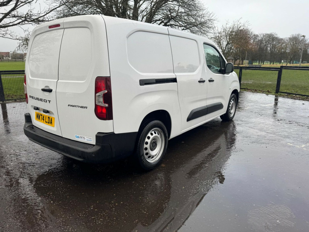 This 2024 Peugeot Partner is a 1.5 BlueHDi 950 Professional Long Panel Van LWB Euro 6 (s/s) 6dr, a robust and capable vehicle designed for professional use. It features a 1.5 litre diesel engine and benefits from a Euro 6 emission class. For convenience and practicality, this model is equipped with sliding doors on both the left and right sides, automatic on-off headlight control, and a smartphone station with Bluetooth connectivity. The van also boasts eco LED headlights with integrated daytime running lamps and rear parking sensors to assist with manoeuvring. , The Peugeot Partner Professional trim offers excellent value, highlighted by an impressive fuel economy of 54 miles per gallon and low CO2 emissions, making it an economical choice for your business. Its generous cargo volume of 3900 litres provides ample space for your goods. Furthermore, this vehicle falls into a low insurance group, indicating that running costs are kept to a minimum compared to similar vehicles. , Whatsapp walk-around available - please call, , At GA Vans, we provide Dundee with the best choice of quality used vans. Please see our reviews and Facebook page for feedback from satisfied customers, old and new. All our commercial vehicles are hand sourced and prepared to our exacting standards. All vans are supplied with a 12 months Platinum Plus warranty underwritten by Momentum Warranties so you can be sure your new vehicle will keep you, and your business moving. , Why Choose us?, 12 months Platinum Plus Warranty, 12 months MOT, Serviced prior to delivery