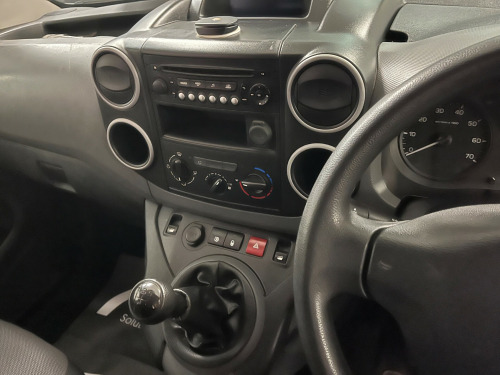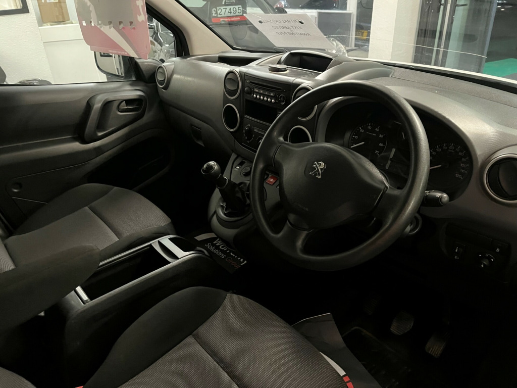 v socket in dashboard, 6 tie-down hooks in cargo area, distance to next service indicator, 15in steel wheels with black hub, electrically adjustable door mirrors, full size spare wheel, solid rear doors, twin sliding side doors, unglazed asymetric rear doors, opening to 180 degrees, abs with emergency brake assist, deadlocks, 2 plip keys, separate locking for cab, drivers airbag, esc, electronic brake force distribution (ebfd), high level third brake light, hill start assist, remote central locking, rolling code transponder immobiliser (thatcham approved), two head restraint, height adjustable head restraints, variable power assisted steering, bluetooth, drivers seat rake, reach and height adjustment, electric front windows with one-touch on drivers side, height and reach adjustable steering wheel, integrated cup holders, peugeot connect usb, rd4 radio/ cd player (mp3 cd compatible), sliding drawer under drivers seat, steering mounted controls, trip computer, upholstery - curitiba grey cloth