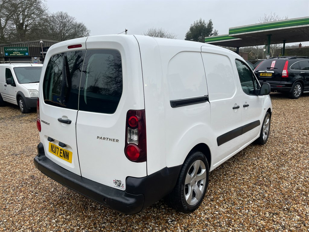 Well presented 5 seat crew van Peugeot Partner 2017 with 96k miles, service history & no vat to pay. Finished in white coachwork with charcoal cloth upholstery. Alloy wheels, electric windows & digital radio. Panelled cargo area with rear door privacy glass. Ideal van for trade gangs travelling or remove rear seats for additional carrying capacity. Twin side loading doors for easy access. Supplied with fresh valet, new mot, oil service & 3 months warranty. Economical van returning 70+ mpg when extra urban driving. 2 Keys & V5 Present. Nationwide delivery offered at cost. Find us at Landford Service Station. SP5 2BB 3 Months Parts & Labour Warranty Inc,Adjustable Steering Column,Alloy Wheels,Anti Lock Brakes,Bluetooth Preparation (Phone),Central Locking,Cloth Upholstery,Cupholders,Electric Windows,Electronic Brake Assistance (EBA),Electronic Brakeforce Distribution (EBD),Electronic Stability Programme (ESP),Front Electric Windows,Glazed Rear Doors,Lined Cargo Area,No Vat To Pay,New Mot & Serviced,Part Exchange Welcome,Power Assisted Steering (PAS),Rear Doors - Hinged 180,Road Tax 345.00,Solid Paint,Turbo Diesel ,Twin Side Loading Doors,1.6 Turbo Diesel,2 Keys & V5 Present