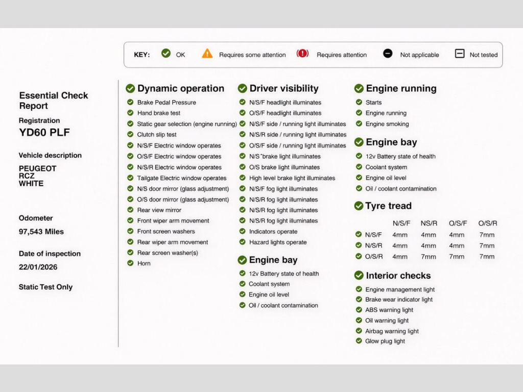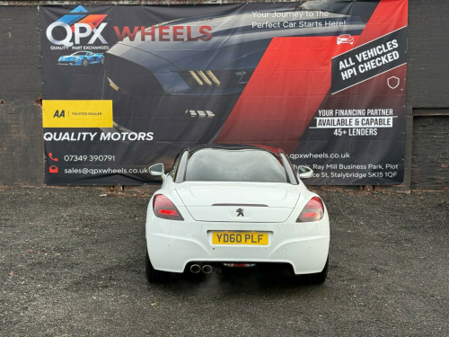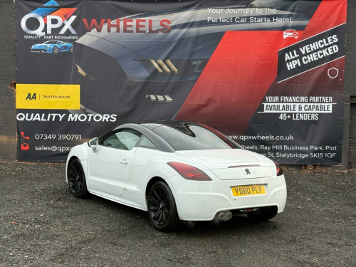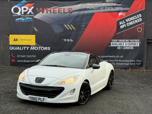 Stylish and sporty 2010 (60) Peugeot RCZ 1.6 THP Sport (Euro 5) 2dr finished in white. Petrol manual 97000 miles, ULEZ compliant a great-looking coupe with strong road presence and everyday usability.ABS (Anti-lock Braking System)ESP / stability controlTraction controlFront airbagsFront side airbagsCurtain airbagsISOFIX child seat pointsInterior / cabinAir conditioningElectric windowsRemote central lockingTrip computer / multi-function displayRadio / CD audio systemAUX inputLeather-trimmed steering wheelSplit/folding rear backrests (2+2 seating layout)Due to high demand, early booking of viewings is recommended. Arrange yours via our website https://qpxwheels.co.uk/ or by calling +44 (0)7349390791Our friendly team will look after you before, during and after the sales. We will help you with taxing the vehicle, completing official forms, and we will make sure that you, your family and loved ones are safe on the road. We also offer a wide range of warranties and finance to meet your needs. WHO WE AREWe are a car dealership with 16 years of experience, based in Clarence Street, Stalybridge, SK15 1QF. We are 100% sure that we can find you the right vehicle as we offer over 150 cars for sale at any time. OUR QUALITY PROMISE- Every car comes with our FREE 3 Months warranty- We offer a fresh MOT for all vehicles due for one within the next 3 months. - All our vehicles are HPI Clear and undergo a 39-Point check, conducted by professional inspectors. - Every vehicle is valeted and sanitised to a high standard. - We are able to offer delivery nationwide at competitive prices, don't hesitate to contact us for a quote.FINANCE, PART EXCHANGE OR A STRAIGHT PURCHASE IS AVAILABLE. QPX Wheels Team.https://qpxwheels.co.uk/ in alloy wheels - original, 18in original alloy wheels, 6 speakers 4 speakers & 2 tweeters, abs - anti lock braking system, asr - anti slip regulation, air conditioning - automatic dual zone, airbags - front passenger with deactivation switch, airbags - side, alarm - ultrasonic, auxiliary port, bluetooth handsfree kit, cruise control, door mirrors - electric folding and heated, door mirrors - electrically adjustable and heated, drivers airbag, eba - emergency brake assist, ebfd - electronic brake force distribution, esp - electronic stability programme, electric front windows, exhaust tailpipe - twin sports, isofix location points - rear, leather steering wheel, peugeot connect sound radio-cd player, peugeot connect usb, power assisted steering, rake and reach adjustable steering wheel, rear parking aid, remote control central locking, seats - folding rear two place bench, seats - sports, speed limiter, tinted windows - rear and acoustic, trip computer, tyre repair kit