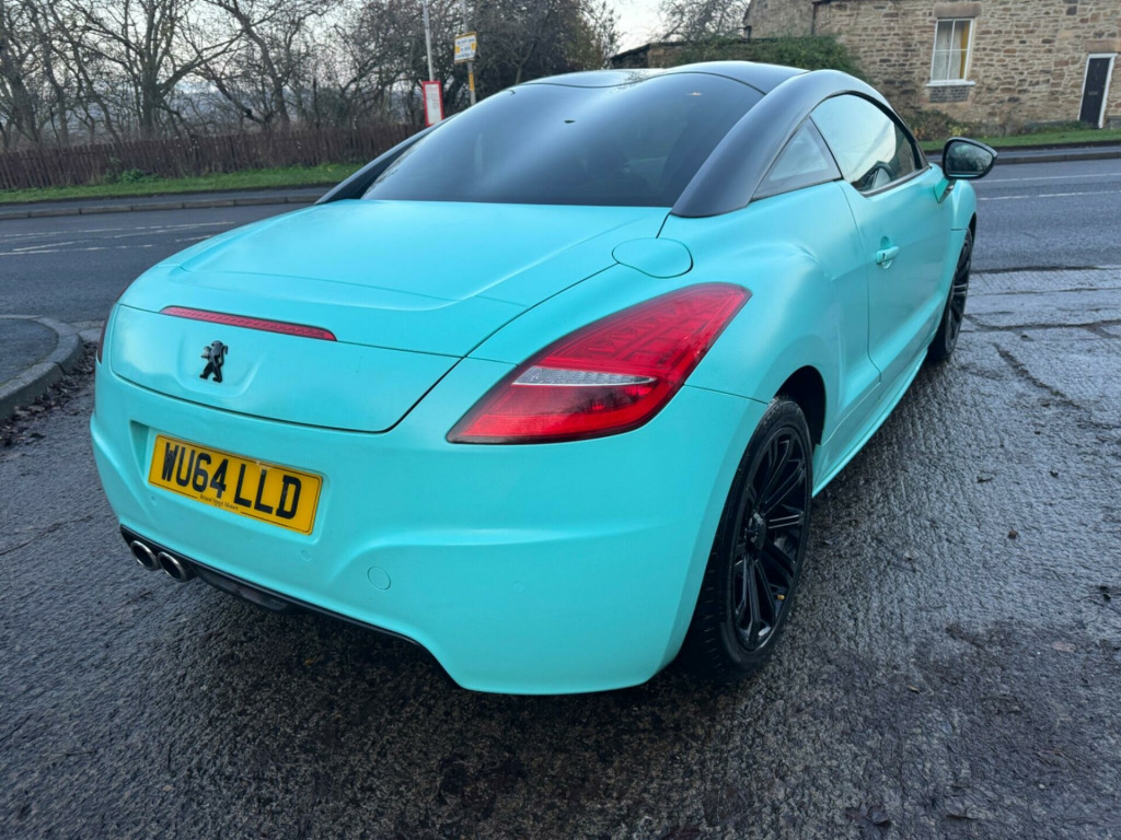 This 2014 Peugeot RCZ HDi Sport is a rare find, having had only three owners from new. This stylish coupe boasts a powerful 2.0L diesel engine and comes in the desirable Sport trim. You'll appreciate the convenience of automatic headlights that switch on by themselves, along with rear parking aid sensors to help you manoeuvre with ease. Inside, the cabin offers automatic dual zone air conditioning for personalised comfort, and a Bluetooth handsfree kit allows for safe and easy connection to your phone.COMES WITH A FULL SERVICE HISTORY AND A 12 MONTHS WARRANTY. VINAL MATT WRAP IN TURQUOISE. LOOKS AMAZING. The RCZ HDi Sport stands out with its low insurance group, making it a more economical choice compared to similar vehicles. This particular example benefits from a well maintained history, indicated by its limited number of owners. The combination of its sporty design, efficient diesel engine, and practical features like automatic climate control and Bluetooth connectivity, makes this Peugeot RCZ a compelling option for those seeking a distinctive and enjoyable driving experience. in alloy wheels - original, abs - anti lock braking system, asr - anti slip regulation, air conditioning - automatic dual zone, airbags - front passenger with deactivation switch, airbags - front side, alarm - ultrasonic, bluetooth handsfree kit, cruise control, dsc - dynamic stability control, deadlocks, door mirrors - electrically adjustable-heated and folding, drivers airbag, eba - emergency brake assist, ebfd - electronic brake force distribution, esp - electronic stability programme, electric front windows, electrochrome rear view mirror, exhaust tailpipe - twin sports, follow me home headlights, headlights - automatic, isofix location points - rear, leather steering wheel with stitch detail, locking wheel bolts, peugeot connect rd45 radio-cd and mp3, peugeot connect usb, power assisted steering - variable, rain sensing front wipers, rake and reach adjustable steering wheel, rear parking aid, remote control central locking, seats - folding rear two place bench, seats - sports, selective unlocking of vehicle access points, speakers x6, speed limiter, spoiler - rear active, tinted windows - rear and acoustic, trip computer, tyre repair kit