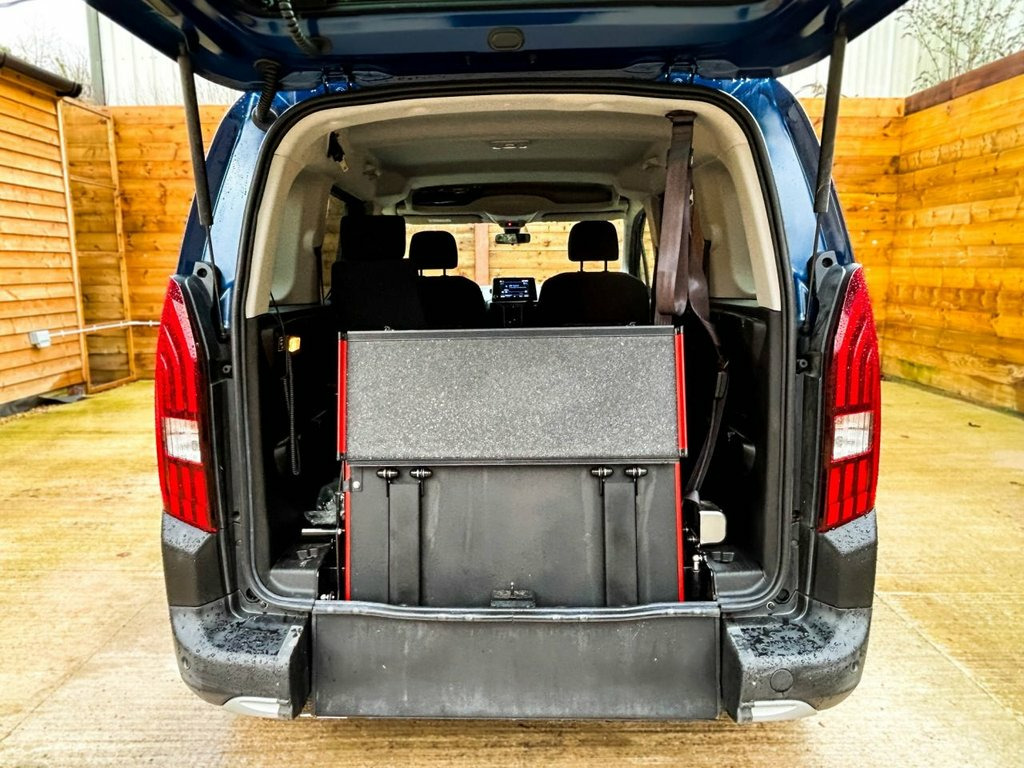 This Allied Mobility converted Peugeot Rifter Wheelchair Accessible Vehicle (WAV) has 3 Seats (2 Front and 1 Rear). Equipment includes Fold Flat Wheelchair Ramp, Electric Winch, Air Conditioning, Electric Front Windows, Electric Adjustable Wing Mirrors, Power Steering, Remote Central Locking, Tinted Rear Windows.
