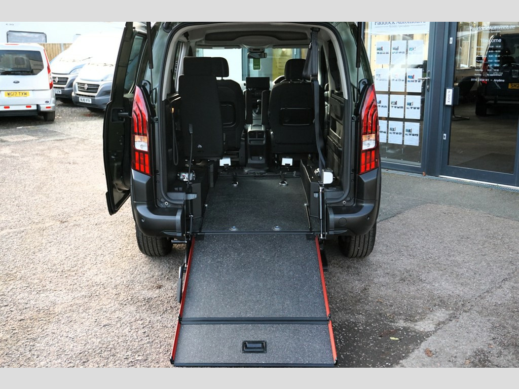 NEW SHAPE Peugeot Rifter 1.5BlueHDi Horizon RE ALLURE, Disabled, Wheelchair Accessible Vehicle, WAV. Complete with Air Conditioning, Power Steering, Remote central locking and Electric windows. 1 Owner from New and in Superb Condition, This Nearly New, Ultra Low Mileage Vehicle Represents a HUGE SAVING off new Price! While Contrasting Colour Coded Door Handles, Door Mirror Covers, Alloy Wheels and Roof Rails Complete The Look! Desirable Allied Wheelchair Conversion with a Lowered floor, a Lightweight/Lay Flat Ramp to the rear with the Added Benefit of an Electric Wheelchair Winch. 3 Seats plus 4 point Wheelchair Securing with 3 point seat belt for the Wheelchair User! Please call with your Requirements. Supplied Complete with a fresh Service, Valet and a Comprehensive Warranty. Enquire today about our Reservation Scheme! We offer Nationwide Delivery, with over 50 adapted vehicles available. Please try Fish for insurance cover. www.fishinsurance.co.uk We are also Finance Brokers. Details on request. Call for details 0116 2304141 All prices quoted assume VAT exemption as all vehicles are converted for personal wheelchair use - please contact us for any queries or clarification. Follow links to our website for more high quality pictures, measurements, and internal 360 photographs. Errors and omissions excepted. Available Width: 81cm,Adjustable Steering Wheel,Air Conditioning,Alloy Wheels,Apple CarPlay,Auto On Headlights,Bluetooth Preparation (Phone),Central Locking,Cloth Upholstery,Cruise Control,DAB Radio,Daytime Running Lights,Electric Door Mirrors,EURO 6,Front Electric Windows,Front Fog Lights,Leather Steering Wheel,LED Headlights,Metallic Paint,Position: Rear Passenger,Power Assisted Steering (PAS),Privacy Glass,Rain Sensitive Wipers,Rear Parking Sensor,Roof Rails,Wheelchair, Electric Winch.,Wheelchair Accessible,Available Height: 148cm,Available Length: 142cm