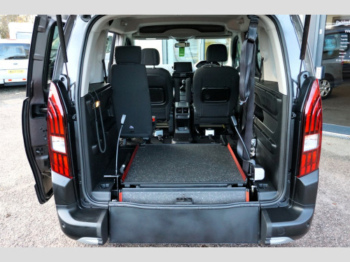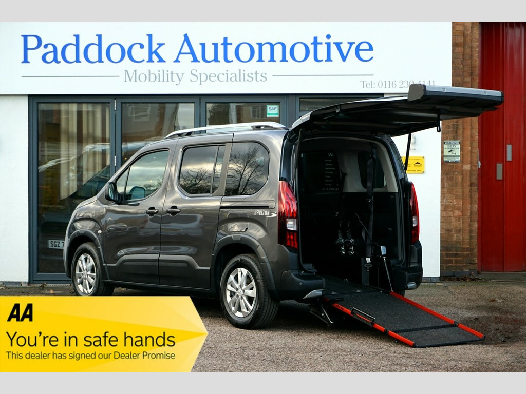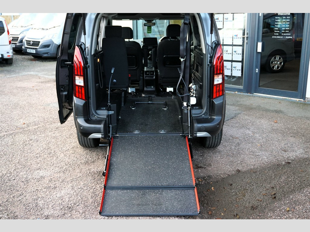 Peugeot Rifter 1.5BlueHDi Horizon RE Allure, Disabled, Wheelchair Accessible Vehicle, WAV. Complete with Air Conditioning, Power Steering, Remote central locking and Electric windows. 1 Owner from New and Complete with Comprehensive Service History. In Superb Condition with Colour Coded Door Handles, Door Mirror Covers while Contrasting Roof Rails Complete The Look! Sought After Allied wheelchair Conversion with a Lowered floor, a Lightweight/Lay Flat Ramp to the Rear with the Added Benefit of an Electric Wheelchair Winch. 3 seats plus Wheelchair or Mobility Scooter, with 4 point Wheelchair securing with lap and diagonal seat belt for the Wheelchair user. Supplied Complete with a fresh Service, Valet and a Comprehensive Warranty. Enquire today about our Reservation Scheme! We offer Nationwide Delivery, with over 50 adapted vehicles available. Please try Fish for insurance cover. www.fishinsurance.co.uk We are also Finance Brokers. Details on request. Call for details 0116 2304141 All prices quoted assume VAT exemption as all vehicles are converted for personal wheelchair use - please contact us for any queries or clarification. Follow links to our website for more high quality pictures, measurements, and internal 360 photographs. Errors and omissions excepted. Adjustable Steering Wheel,Air Conditioning,Alloy Wheels,Apple CarPlay,Bluetooth Preparation (Phone),Central Locking,Cruise Control,Cloth Upholstery,DAB Radio,Daytime Running Lights,Electric Door Mirrors,Front & Rear Electric Windows,EURO 6,Front Fog Lights,ISOFIX,Leather Steering Wheel,LED Headlights,Metallic Paint,Position: Rear Passenger,Power Assisted Steering (PAS),Privacy Glass,Rain Sensitive Wipers,Rear Parking Sensor,Roof Rails,Wheelchair Accessible,Wheelchair, Electric Winch.,Available Width: 81cm,Available Height: 148cm,Available Length: 142cm