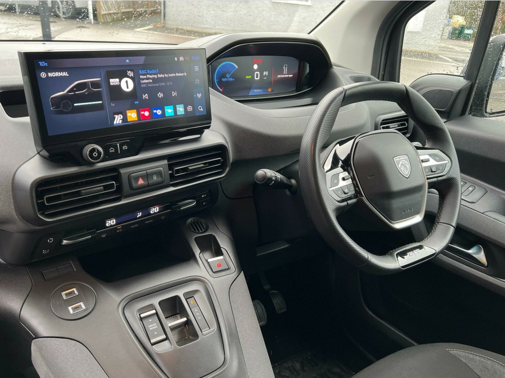 This 2025 Peugeot e Rifter GT is a superb example, having had only one owner since new. As a fully electric vehicle, it boasts a 52 kWh battery offering a maximum range of 199 miles. Charging is convenient, with a full charge at home taking approximately 6 hours and 43 minutes using a 7kW charger, and a rapid charge to 80% achievable in just 30 minutes at a public charging station. This GT trim level comes equipped with the Drive Assist Pack, featuring adaptive cruise control, and the Peugeot i-Connect Infotainment System, which seamlessly integrates Android Auto and Apple CarPlay.