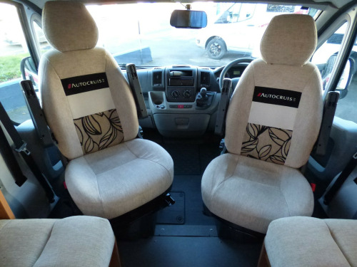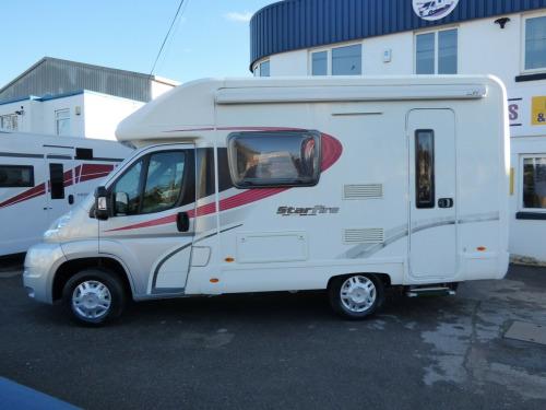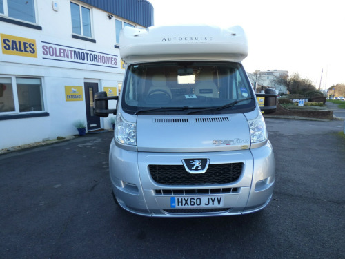 Solent are pleased to offer this well looked after Autocruise Starfire. The Starfire has always been a popular model due to it's well thought out design and open and light habitation area. Based on the Peugeot Boxer chassis with 2.2l engine and 5 speed manual transmission, this motorhome is ideal for those who want a simple lounge to bed conversion - this can be used as two singles or pulls together for a large double. Both front seats swivel, so the lounge can accommodate 6 plus for dining with ease. The rear kitchen is well equipped and comes with a separate gas oven and grill plus 3 gas and one electric burner hob, a microwave and a fridge/freezer. The side bathroom is a wet room style and is fitted with a cassette type toilet, wash hand basin and shower along with a cupboard. Heating and hot water is taken care of with a Truma Ultraheat dual fuel system and other features in this Starfire motorhome include: Fiamma F45S wind out awning, electric step, reversing camera, Microwave, Avtex TV & antenna and a pleated windscreen blind. 2 berth, 2 seatbelts, L. 5.90m, W. 2.24m, H. 2.9M, 3,300kg, 38,946 miles. tex tv, carpets, electric step, reversing camera, solar panel, tv antenna, wind out awning, free 3 year autoguard warranty!, 15'' Steel