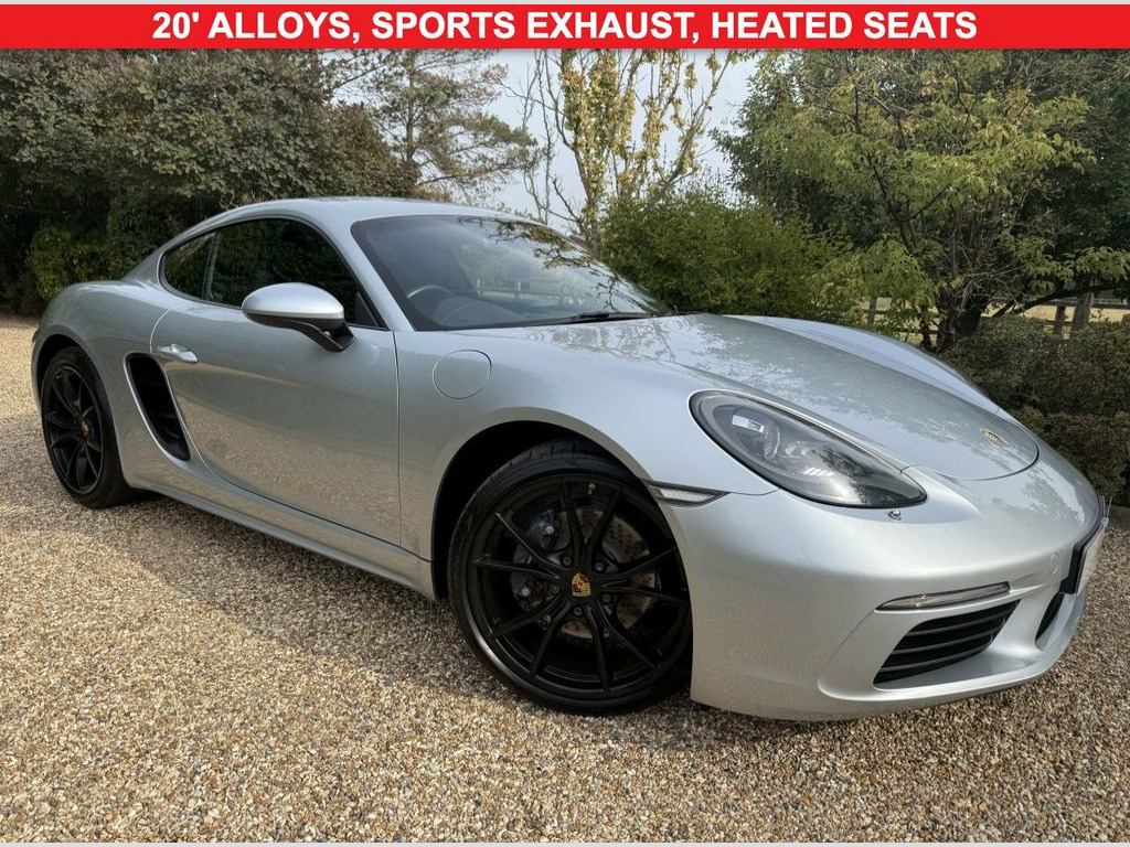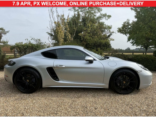 Whytehall are pleased to offer superb high specification full dealer history PORSCHE 718 CAYMAN 2.0T Coupe 2dr Petrol PDK Euro 6 (s/s) (300 ps) Factory extras include Rhodium silver metallic, black leather and alcantara interior, heated seats, GT sports leather steering wheel, PDLS Porsche dynamic lighting system, 20' Carrera S alloy wheels finished in platinum satin, rear wing painted in high gloss black, sports exhaust in black, tinted taillights, PDK gearbox. 2 sets of keys HPI checked. Purchased direct from Porsche main dealer as a part exchange. Please click onto our website to build your own finance package. Full online purchase including delivery service available. PX welcome. 12-Volt Socket in Passenger Footwell, 18in Alloy Wheels - Cayman, 20in Alloy Wheels - Carrera S, Adjustable Fan with Air Recirculation an, Air Conditioning with Integrated Active , Alarm System, Anti-Theft Wheel Bolts, Automatic Headlight Activation including, Automatically Extending Rear Spoiler, Bi-Xenon Headlights including Porsche Dy, Bi-Xenon Headlights with Integrated LED , Brake Calipers - Black, Clothes Hooks on Seat Backrests, Connect Plus, Digital Displays for Vehicle Speed - Cho, Digital Radio, Door Sill Guards - Model Designation Log, Electric Parking Brake, Electric Windows Lifts with One Touch Op, Electrically Adjustable Heated Exterior , Electromechanical Power Steering with V