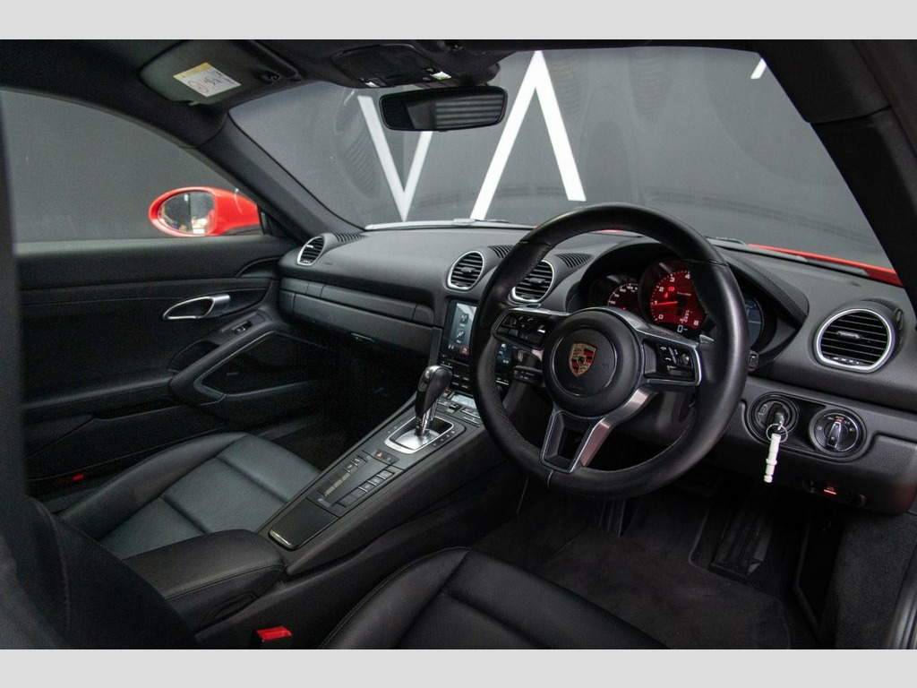 PORSCHE 718 CAYMAN 2.0T Coupe GPF 2dr Petrol PDK Euro 6 (s/s) (300 ps) blends precision engineering with a driver-focused interior and a striking Guards Red finish for pure sports car appeal. Its sleek exterior gains added distinction through Bi-Xenon headlights with Porsche Dynamic Light System, tinted taillights, painted air intake grilles, Jet Black Metallic alloy wheels, and twin sports tailpipes for a purposeful stance. Inside, refinement meets performance with a Black Leather Interior Package complemented by Alcantara roof lining, Guards Red instrument dials, leather sun visors, stainless steel sill guards, and a leather-trimmed dashboard with aluminium PDK gear selector. Heated sports seats, two-zone climate control, Bose Surround Sound, and Porsche Communication Management with navigation ensure comfort and connectivity, while adaptive cruise control, automatic dimming mirrors, and advanced Porsche Stability Management deliver composed, confident driving. Completing the package are practical touches such as front and rear luggage compartments, integrated cupholders, and intelligent lightweight construction for optimised performance and efficiency. Adaptive Cruise Control, 64 Litre Fuel Tank, Bi-Xenon Main Headlights in Black with P, Leather - Black, BOSE Surround Sound System, Vehicle Documentation Folder in Leather, Two-Zone Automatic Climate Control, Sun Visors in Leather, Seat Heating, Roof Lining in Alcantara, Passenger Footwell Storage Net, PDK Gear Selector - Aluminium, Leather Interior Package - with Leather , Instrument Dials - Guards Red, Inner Door Sill Guards - Leather, Door Sill Guards - Stainless Steel, Dashboard Trim Package in Leather, Automatically Dimming Mirrors with Integ, Wheel Centres with Full-Colour Porsche C, Wheels Painted in Jet Black Metallic, Tinted Taillights, Sports Tailpipes, Rear Side Air Intake Grilles