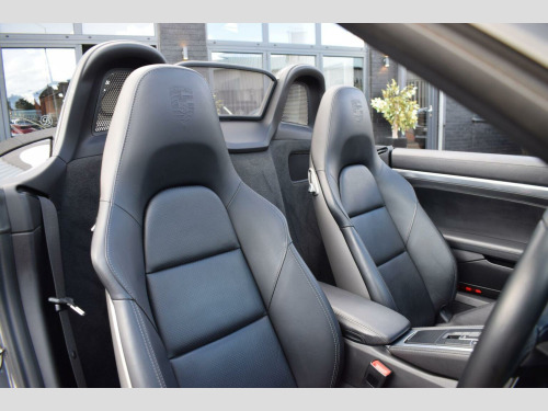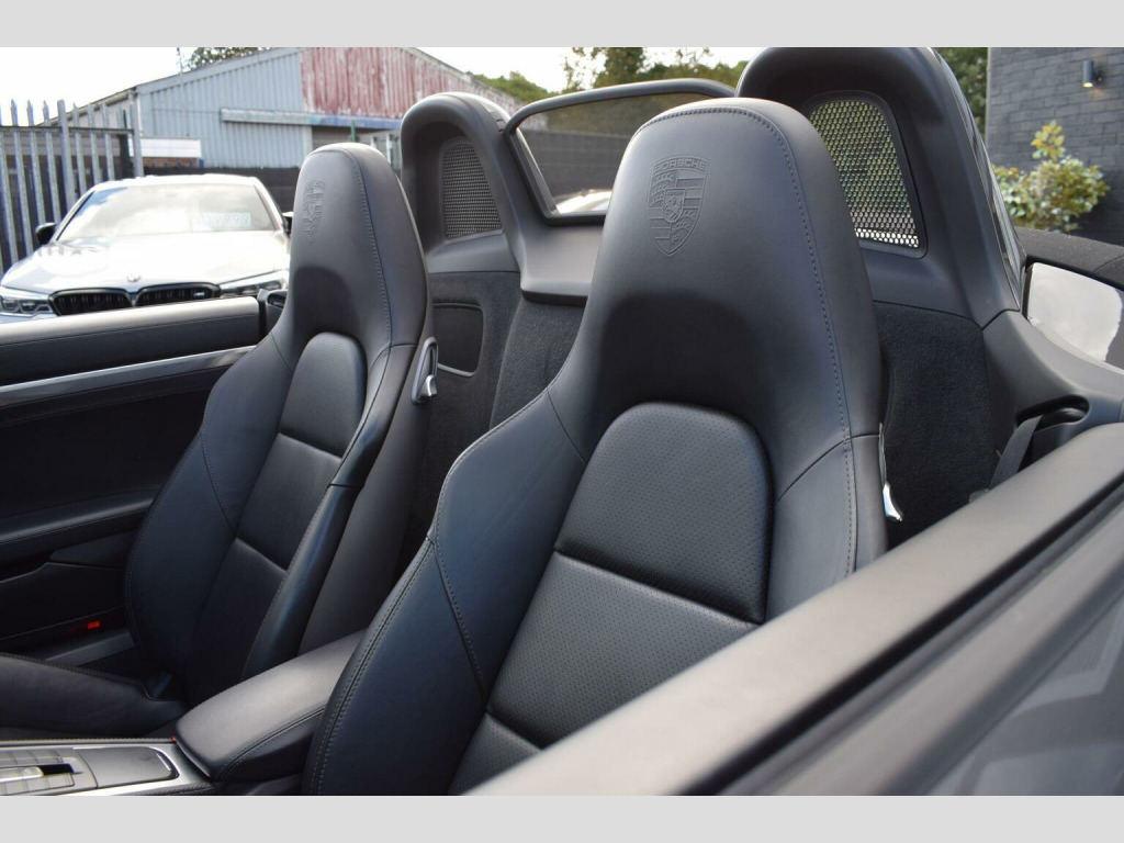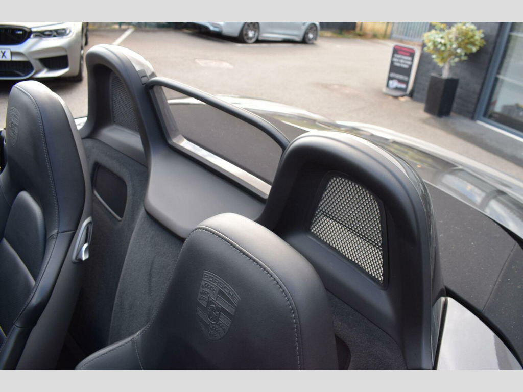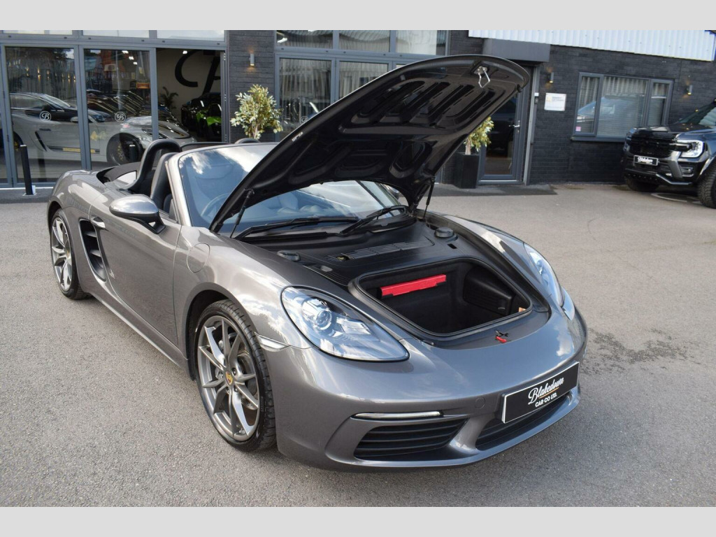 September 2016 66 Porsche 718 Boxster 2.0T finished in sought after Agate Grey Metallic with black convertible roof and full Black extended leather interior. Just 27900 miles covered with stamped Porsche and specialist service history to support including regular oil services plus replacement spark plugs at 23500 miles. Supplied with all correct documentation, handbooks etc and subjected to our usual strict pre delivery inspection and preparation process ensuring all cosmetic and mechanical elements are in good order including matching Pirelli tyres. Presented in fantastic condition throughout and boasting a great specification with a selection of sought after optional extras fitted in addition to the extended leather interior package which gives additional leather elements to various areas of the cabin including upper dashboard, centre console, door arm rests, door grab handles, upper door cards, centre arm rest, instrument cluster cover etc. Other optional extras include: Sport Chrono Package with Dynamic Transmission Mounts, 20in Alloy Wheels - Carrera S, Sports Seats Plus - Electrical 2 Way, Seat Heating, 64 Litre Fuel Tank, Roll-Over Bars Painted in Exterior Colour, Model Designation 718, GT Sports Steering Wheel, Porsche Crest on Head Restraints and Wheels Painted in Satin Platinum. , UK wide delivery available. Please get in touch for details. , PAYMENT: We accept debit cards for payments up to £500. For larger payments we accept BACS (bank transfer) only. Please check transfer processing times and limits with your bank if you plan to pay on collection as we are unable to release cars without cleared funds. Please also bring anything you may need to access your online banking on the day including securekeys, card readers etc. We accept cash payments up to £9000 which are subject to a 2% banking fee. Please note a £250 admin fee is applicable for purchases funded by third party finance lenders. , Please note: Although every effort is made to ensure the accuracy of every advert and vehicle specification, system and human errors can occur from time to time and it is advised to check for confirmation.