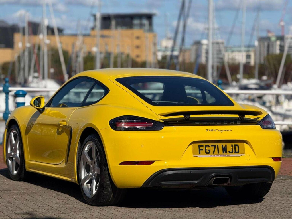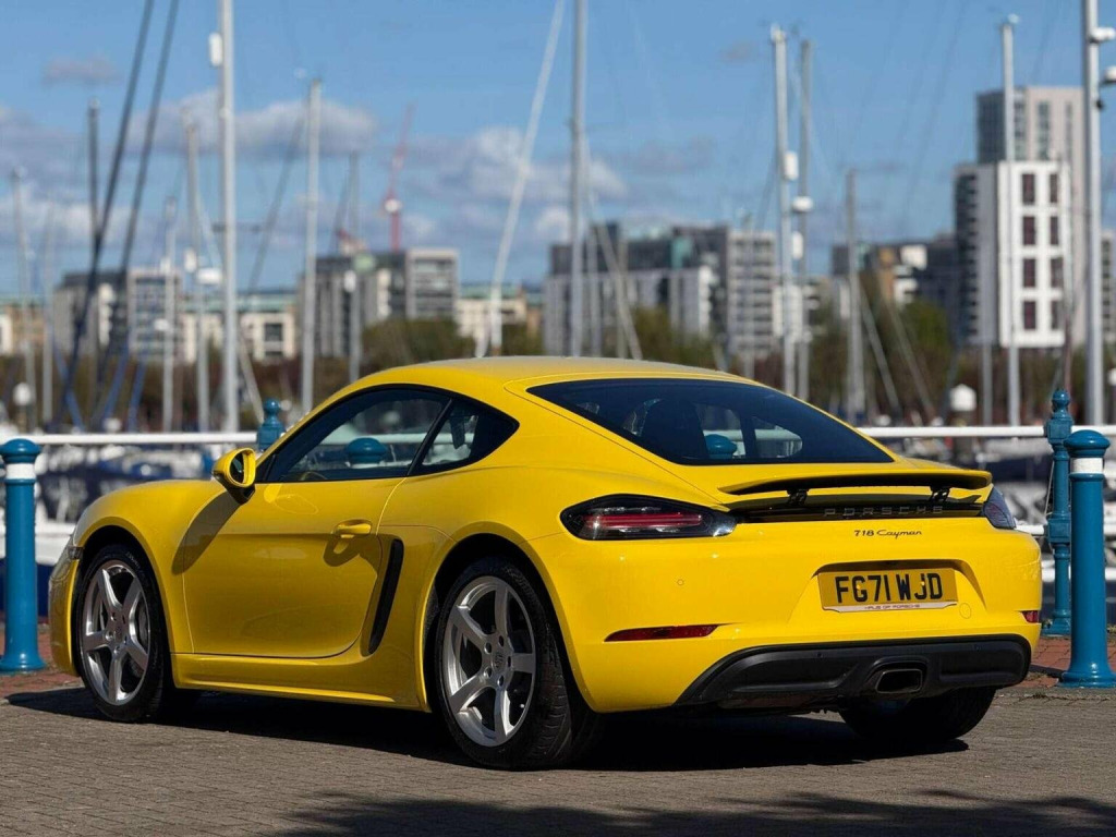 We are pleased to offer this bright RACING YELLOW 718 CAYMAN Presented in fantastic condition and a proper drivers car having a 6 speed manual transmission. Presented in superb condition inside out this model features half leather with Alcantara seats, Heated seats , satellite navigation, Reversing camera, Rear parking sensors, front parking sensors, DAB Radio, 19 alloy wheels & Air conditioning. Presented with a FULL PORSCHE SERVICE RECORD, 4 Continental matching tyres, a fresh MOT and 2 keys. Ashley James Automotive – Your Trusted Porsche Specialist in South Wales, With over 10 years of experience, Ashley James Automotive is proud to be a dedicated Porsche specialist, delivering expert service and a welcoming, customer-focused environment. Based in South Wales, we offer top-tier servicing for Porsche models at our fully equipped Porsche service centre, Haus of Porsche, which we have recently launched as a specialist division dedicated solely to the care and maintenance of Porsche vehicles. At Ashley James, youll find a no-pressure, pet-friendly atmosphere—feel free to bring along your furry friends! All our vehicles come with a warranty as standard, with the option to upgrade to 6 or 12 months for added peace of mind. Most vehicles are ready to drive away the same day. We also offer flexible finance options to suit your needs. As an AA Dealer Member and with a 4.9-star rating on Google, you can trust us to deliver quality, reliability, and friendly service every step of the way.