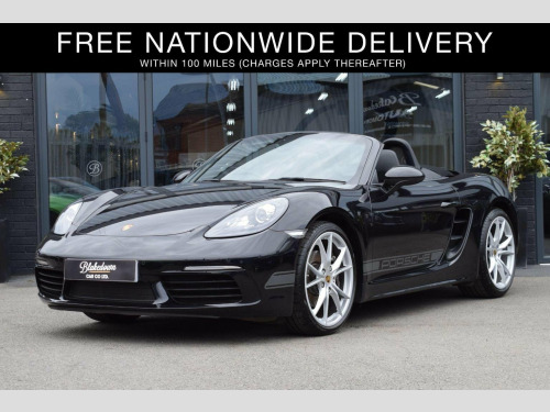 2019 ’19 Porsche 718 Boxster 2.0T PDK finished in Jet Black Metallic with with full black leather interior and black convertible roof. 38000 miles covered with Porsche main dealer and independent service history to support. This consists of 2021 service by Porshce Centre Nottingham, 2023 service by Porsche Centre Bournemouth and independently serviced in March 2025 meaning next service not due until 2027. Additional notable maintenance includes replacement drive belt with the 2025 service, replacement spark plus with the 2023 service and 2 brake fluid changes. Supplied with all correct documentation, handbooks etc and subjected to our usual strict pre delivery inspection and preparation process ensuring all cosmetic and mechanical elements are in good order including matching Pirelli tyres. Presented in exceptional condition throughout and boast a great factory specification with a host of desirable options fitted from new including: BOSE Surround Sound System, Seat Heating, 20in Alloy Wheels - Carrera S, Luggage Net In Passenger Footwell, Wheel Centres with Full-Colour Porsche Crest, Park Assist - Front and Rear, Power Steering Plus, Electrically Folding Exterior Mirrors, Door Sill Guards in Stainless Steel - Illuminated and Tinted Taillights. Other highlights include: Automatic Deploying Rear Wing, Automatic Headlight Activation including Welcome Home Lighting, Bi-Xenon Main Headlights with Integrated LED Daytime Running Lights, Door Sill Guards with Model Logo, Green Tinted Heat-Insulating Glass, LED Tail Lights with Integrated Four-Point Brake Lights and Reversing Lights, Luggage Compartments at Front and Rear, Net-Type Wind Deflector, PSM - Porsche Stability Management, Porsche Communication Management - PCM, Sound Package Plus, Sports Seats with Electric Backrest Adjustment, Tyre Pressure Monitoring - TPM and more. , UK wide delivery available. Please get in touch for details. , PAYMENT: We accept debit cards for payments up to £500. For larger payments we accept BACS (bank transfer) only. Please check transfer processing times and limits with your bank if you plan to pay on collection as we are unable to release cars without cleared funds. Please also bring anything you may need to access your online banking on the day including securekeys, card readers etc. We accept cash payments up to £9000 which are subject to a 2% banking fee. Please note a £250 admin fee is applicable for purchases funded by third party finance lenders. , Please note: Although every effort is made to ensure the accuracy of every advert and vehicle specification, system and human errors can occur from time to time and it is advised to check for confirmation.