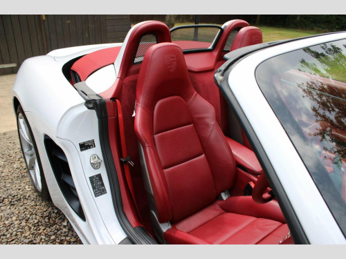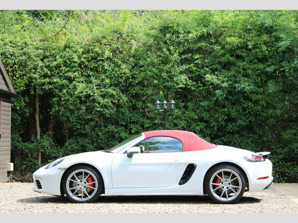 We are delighted to offer this stunning low mileage Boxster in carrara white metallic with full bordeaux red leather and red hood. We understand that the car was specially ordered as a Porsche showroom car/demonstrator and has had only 1 owner since and benefits from full Porsche main dealer service history and £9663 of factory options with a price new of £51402. Specification includes PCM sat nav, Bose sound system, air conditioning, adaptive sports seats plus -18 way electric, heated seats, heated multifunction steering wheel, park assist front and rear, roll over hoops painted in body colour, vehicle key painted in body colour, cruise control, folding mirrors, guards red seat belts, Porsche crest on headrests, PSM Porsche stability management and 20 Carrera S alloy wheels. 2 x keys present. Call or visit our website for a finance quote (subject to status) No admin fees are charged. We specialise in privately owned high specification vehicles and endeavour to buy the best examples of the marques we sell. Old fashioned service with up to date product knowledge. 30 years of successful selling please check out our 5 Star reviews and buy with confidence. We would like to point out Autotraders Price indicator is AI GENERATED and does not take into account many real world factors. We believe it is about selling the best we can which our vast knowledge affords us. Quality is the most important factor not buying the cheapest. As they say cheap today is dear tomorrow.