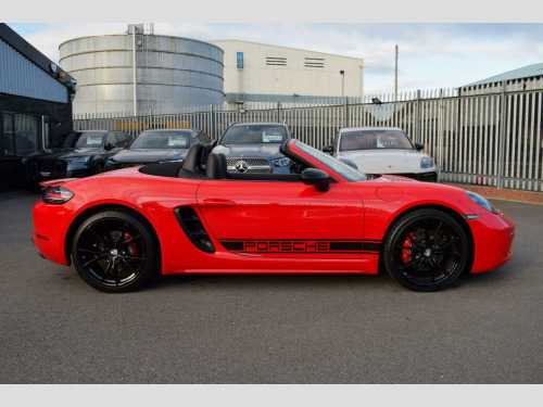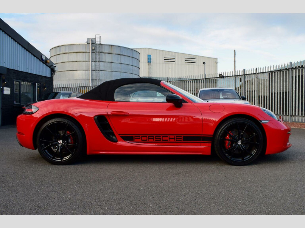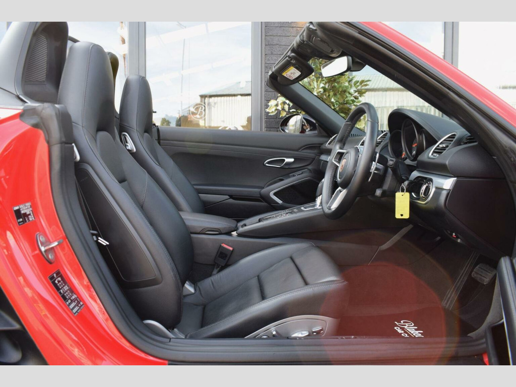 2018 18 Porsche 718 Boxster 2.0T PDK finished in classic Guards Red with black full leather interior and black convertible roof. Just 36950 miles covered by with excellent Porsche and specialist service history to support. This consists of 2020, 2022 and 2024 services all completed by Porsche. Additional notable maintenance includes replacement spark plugs in 2024 and regular brake fluid services completed with each service. Supplied with all correct documentation including original order form/invoice and subjected to our usual strict pre delivery inspection and preparation process ensuring all cosmetic and mechanical elements are in good order. Presented in fantastic condition throughout and very well equipped with highlights consisting of: 20in Alloy Wheels - Carrera S, LED Headlights including Porsche Dynamic Light System Plus - PDLS Plus, Sports Seats - Electrical 14 Way, Sports Exhaust System including Sports Tailpipes in Silver, Two-Zone Automatic Climate Control, Park Assist - Rear, Door Sill Guards with Model Logo, Green Tinted Heat-Insulating Glass, LED Tail Lights with Integrated Four-Point Brake Lights and Reversing Lights, Luggage Compartments at Front and Rear, Net-Type Wind Deflector, PSM - Porsche Stability Management, Porsche Communication Management - PCM, Sound Package Plus, Sports Seats with Electric Backrest Adjustment, Tyre Pressure Monitoring - TPM and more. , UK wide delivery available. Please get in touch for details. , PAYMENT: We accept debit cards for payments up to £500. For larger payments we accept BACS (bank transfer) only. Please check transfer processing times and limits with your bank if you plan to pay on collection as we are unable to release cars without cleared funds. Please also bring anything you may need to access your online banking on the day including securekeys, card readers etc. We accept cash payments up to £9000 which are subject to a 2% banking fee. Please note a £250 admin fee is applicable for purchases funded by third party finance lenders. , Please note: Although every effort is made to ensure the accuracy of every advert and vehicle specification, system and human errors can occur from time to time and it is advised to check for confirmation.