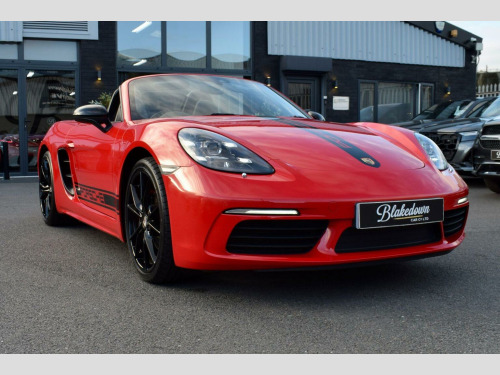 2018 18 Porsche 718 Boxster 2.0T PDK finished in classic Guards Red with black full leather interior and black convertible roof. Just 36950 miles covered by with excellent Porsche and specialist service history to support. This consists of 2020, 2022 and 2024 services all completed by Porsche. Additional notable maintenance includes replacement spark plugs in 2024 and regular brake fluid services completed with each service. Supplied with all correct documentation including original order form/invoice and subjected to our usual strict pre delivery inspection and preparation process ensuring all cosmetic and mechanical elements are in good order. Presented in fantastic condition throughout and very well equipped with highlights consisting of: 20in Alloy Wheels - Carrera S, LED Headlights including Porsche Dynamic Light System Plus - PDLS Plus, Sports Seats - Electrical 14 Way, Sports Exhaust System including Sports Tailpipes in Silver, Two-Zone Automatic Climate Control, Park Assist - Rear, Door Sill Guards with Model Logo, Green Tinted Heat-Insulating Glass, LED Tail Lights with Integrated Four-Point Brake Lights and Reversing Lights, Luggage Compartments at Front and Rear, Net-Type Wind Deflector, PSM - Porsche Stability Management, Porsche Communication Management - PCM, Sound Package Plus, Sports Seats with Electric Backrest Adjustment, Tyre Pressure Monitoring - TPM and more. Cosmetically the car benefits from the additions of lower door Porsche decals, a black bonnet and boot stripe with Porsche lettering and black mirror caps. Door, bonnet and boot decals/stripes are all removable prior to sale upon request. , UK wide delivery available. Please get in touch for details. , PAYMENT: We accept debit cards for payments up to £500. For larger payments we accept BACS (bank transfer) only. Please check transfer processing times and limits with your bank if you plan to pay on collection as we are unable to release cars without cleared funds. Please also bring anything you may need to access your online banking on the day including securekeys, card readers etc. We accept cash payments up to £9000 which are subject to a 2% banking fee. Please note a £250 admin fee is applicable for purchases funded by third party finance lenders. , Please note: Although every effort is made to ensure the accuracy of every advert and vehicle specification, system and human errors can occur from time to time and it is advised to check for confirmation.