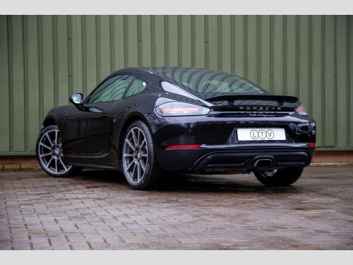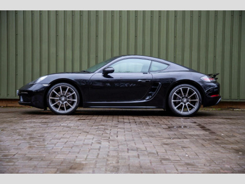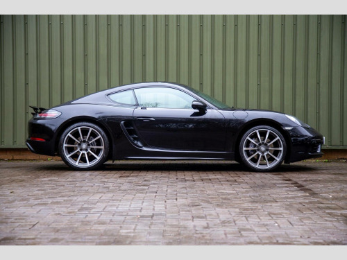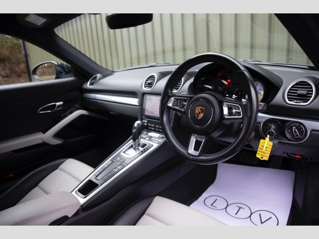 GT SPORTS STEERING WHEEL - HEATED SEATS - Available for acquisition is an exceptional 2018 18 registered Porsche Cayman 2.0T PDK, finished in Jet Black Metallic and complemented by a beautifully appointed Crayon Grey and Black leather interior. With just 25,000 miles from new, this example represents a superb combination of low mileage, desirable specification and meticulous presentation, exemplifying Porsches renowned engineering and design pedigree. At its core is the highly regarded Porsche Doppelkupplung (PDK) transmission, delivering rapid yet seamless gear changes that enhance both performance driving and everyday usability. The driving experience is further elevated by the inclusion of the GT Sports steering wheel, providing a more focused, tactile connection to the road and reinforcing the Caymans sporting character. The exterior is enhanced by striking 20 Carrera Classic alloy wheels fitted with Porsche crested centre caps, giving the car a purposeful and elegant stance. Bi-Xenon headlights improve visibility while contributing to the Caymans unmistakable presence. ParkAssist with front and rear sensors adds reassurance when manoeuvring in tighter environments. Inside, the cabin is finished to an excellent standard, featuring Porsches premium leather package with partial leather seating in Crayon and Black, creating a refined yet contemporary contrast. Comfort is assured through heated seats and two-zone automatic climate control, ensuring an ideal cabin environment in all conditions. The Porsche Communication Management system incorporates navigation and a DVD player, providing intuitive connectivity and entertainment functionality. With its low mileage, desirable colour combination and carefully selected options, this Porsche Cayman 2.0T PDK presents a rare opportunity to acquire a an engaging sports car that embodies true Porsche performance.