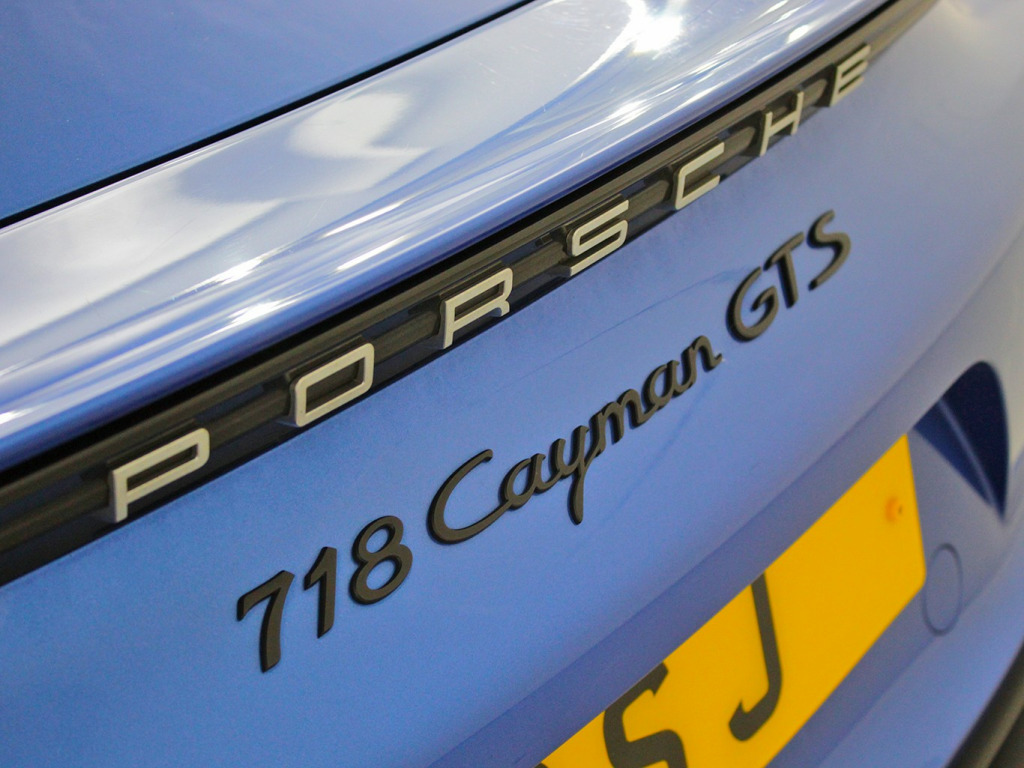 (18 - 2018)360 bhpSapphire blue with black leather / alcantara2.5 litre ''GTS'' model2 wheel drive6 speed manual gearboxAir conditioningPorsche Stability Management (PSM)Active Suspension (PASM)Satellite Navigation (PCM 4)BluetoothDABUSBApple CarplaySound plusSports chronoAlcantara steering wheelSports seatsPorsche Sports Exhaust (PSE)Front parking sensorsRear parking sensorsReverse cameraXenon headlights20 inch wheels24,000 milesCar Reference - JDK