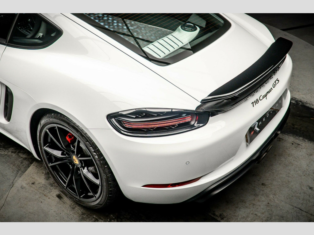 This 2019 Porsche 718 Cayman T GTS presents a remarkable opportunity with exceptionally low mileage for its age, having covered just 26,899 miles. This Euro 6 compliant 2.5 litre petrol model boasts the sought after GTS trim and features a striking rear wing and door handles both finished in high gloss black. Inside, you will find a heated multifunction steering wheel, a premium BOSE surround sound system for an immersive audio experience, and convenient two zone automatic climate control to ensure comfort for all occupants.The performance of this Porsche 718 Cayman T GTS is truly exceptional, achieving 0-62mph in a swift 4.3 seconds. This impressive acceleration demonstrates its superior engineering and driving dynamics compared to other vehicles in its class. Combined with its low mileage and desirable GTS specification, this Cayman offers a compelling package for any discerning driver.. 12-Volt Sockets in Passenger Footwell and Centre Console Storage Compartment, 20in Alloy Wheels - Carrera S, ABS - Anti-lock Brake System, Adjustable Fan with Air Recirculation and Defroster Functions, Air Conditioning with Integrated Active Carbon Filter, Alarm System with Ultrasonic Interior Surveillance, Anti-Theft Wheel Bolts, Automatic Headlight Activation including Welcome Home Lighting, Automatically Extending Rear Spoiler, Bi-Xenon Headlights with Integrated LED Daytime Running Lights, Black Model Designation GTS on Doors, Brake Calipers - Red, Clothes Hooks on Seat Backrests, Coasting Function, Connect Plus, Digital Displays for Vehicle Speed - Chosen Gear - Odometer - Trip Odometer and Clock, Digital Radio, Door Sill Guards - Model Designation Logo, Electrically Adjustable Heated Exterior Mirrors on Door Waist Rails - Aspherical on Drivers Side, Electrically Controlled Parking Brake, Electromechanical Direct Steering with Variable Steering Ratio and Steering Pulse Generator, Elevated Centre Console with an Uncovered Storage Compartment and a Closed Storage Compartment, Engine Immobiliser with in-Key Transponder - Central Locking with Remote Control, Floor Mats, Full Size Airbags for Driver and Front Passenger, GT Sports Steering Wheel, GTS Front Apron Partially Painted in Black, GTS Rear Apron Painted in Black, Green Tinted Heat-Insulating Glass, Heated Rear Screen, Instrument Cluster with Central Rev Counter and High Resolution 4.6inch Colour Display, Instrument Dials and Rev Counter in Black with GTS Logo, Integrated 4G-LTE Compatible SIM, Intelligent Lightweight in Aluminium-Steel-Composite Construction, LED Reading Lights Orientation Ignition Lock - Additionally Luggage Compartment and Glove Compartment Lighting, LED Tail Lights with Integrated Four-Point Brake Lights and Reversing Lights, Lightweight Spring-Strut Axle Front and Rear, Luggage Compartments at Front and Rear, PASM - Porsche Active Suspension Management with Ride Height Lowered by 10mm, PCM - Porsche Communication Management - Include Navigation, PORSCHE Logo in Highly Polished Silver Colour - Model Designation in Satin Black on Luggage Compartment Lid, Porsche Side Impact Protection - POSIP, Porsche Stability Management - PSM with ABS with Advance Brake Functions, Porsche Torque Vectoring - PTV with Mechanically Locking Rear Differential, Power Windows with One-Touch Operation and Door Seal Protection Function, Roof Lining and A-pillar Trims in Black Alcantara, Separate Auxiliary Lights in the Front End with LED Indicators and Position Lights, Sound Package Plus, Sport Chrono Package with Mode Switch and Porsche Track Precision App, Sports Seats Plus - Electrical 2 Way, Sports-Look Pedals and Footrest, Storage Compartment in Each Door, Twin-tract Sports Exhaust System with Black Central Twin Tailpipe in Stainless Steel, Two Individual Cup Holders - Integrated into Dashboard Trim Strip, Tyre Pressure Monitoring - TPM, Tyre Sealing Compound and Electric Air Compressor, Wide Opening Rear Hatch with Heated Screen, Windscreen Washer System with Two Wiper Speeds and Washer Jets, Windscreen with Top-Tint, Alcantara Package GTS in conjunction with GTS interior package, BOSE Surround Sound System, Park Assist - Front and Rear, Two-Zone Automatic Climate Control, Heated Multifunction Steering Wheel, Seat Heating, Rear Wing Painted in Black - High-Gloss, Door Handles Painted in Black - High-Gloss.