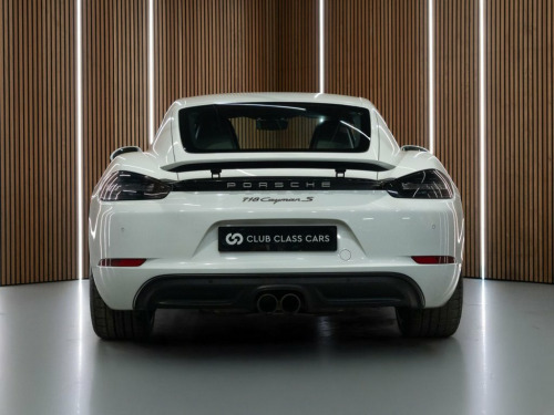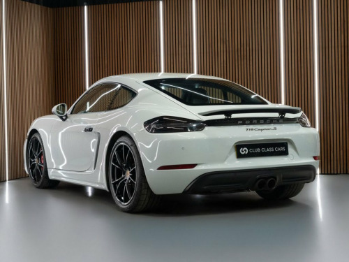 2018 Porsche Cayman S 718 2.5T PDK in White which has covered just over 39,000 miles. Fantastic spec with over £16,000 of factory upgrades including Front End PPF, Adaptive Sports Seats Plus - 18 Way Electrically Adjustable & Heated, Sport Chrono with Mode Switch, Sports Exhaust System in Black, 20in Carrera S Alloys in High Gloss Black with Full Colour Porsche Crest Wheel Centres, PASM Sports Suspension - 20mm Lower, Adaptive Cruise Control, LED Headlights including Porsche Dynamic Lighting System Plus PDLS+, Tinted Taillights, Bose Surround Sound System, Park Assist Front & Rear, Automatically Dimming Mirrors, Door Handles in Black High Gloss, Dual Zone Climate Control, Light Design Package, PCM with Sat Nav, Apple CarPlay, DAB Digital Radio etc. Full Porsche Dealership Service History White, Vehicle Key Painted In Body Colour , Dashboard Trim Package in Leather, Adaptive Sports Seats Plus - Electrical , Adaptive Cruise Control including Porsch, Porsche Crest on Head Restraints, Wheel Centres with Full-Colour Porsche C, Light Design Package, Seat Heating, Tinted Taillights, Automatically Dimming Mirrors with Integ, Two-Zone Automatic Climate Control, Park Assist - Front and Rear, BOSE Surround Sound System, PASM Sport Suspension - 20mm Lower, LED Headlights including Porsche Dynamic, Sport Chrono Package including Mode Swit, 12-Volt Socket in Passenger Footwell, 64 Litre Fuel Tank, Adjustable Fan with Air Recirculation an, Air Conditioning with Integrated Active , Alarm Sy