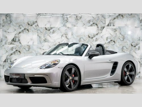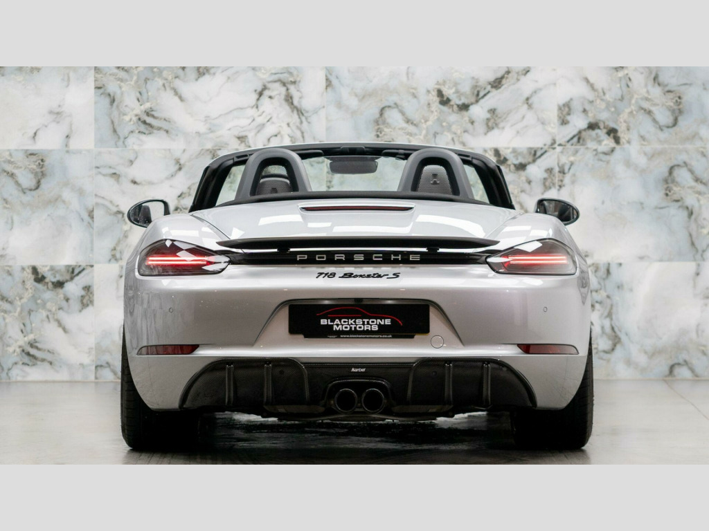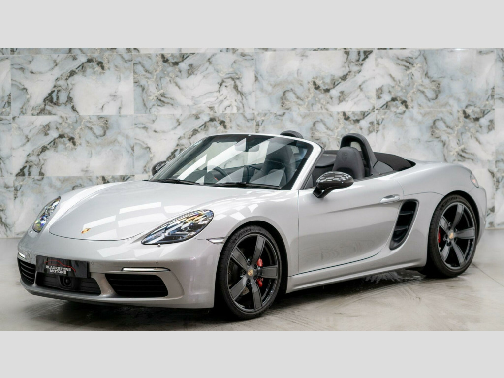 This particular example is a 2 owner vehicle from new, finished in GT Silver Metallic Paintwork with Black leather interior. It benefits with a FULL Porsche service history and is still under Porsche manufactures warranty until December 2026. It is protected with PPF Paint Protection Film on the front end along with a Ghost immobiliser for added security.The high specification of this Porsche includes:- Adaptive Cruise Control- PASM - Porsche Active Suspension Management - Sports Suspension with Ride Height Lowered by 20mm- BOSE Surround Sound System- Adaptive Sports Seats Plus - Electrical 18 Ways- ParkAssist - Front and Rear with Reversing Camera- Sport Chrono Package including Mode Switch- Power Steering Plus- LED Main Headlights including Porsche Dynamic Light System - PDLS- Sports Tailpipes - Black- Heated Multifunction Steering Wheel- Porsche Entry- Wheels Painted in High Gloss Black- 20in Alloy Wheels - Carrera Sport- Porsche Crest on Head Restraints8.9% APR Low rate finance packages available, HP available, PCP available, apply for finance on our website for an instant decision, 5 days driveway insurance available.Take advantage of our full bespoke in house detailing package to suit your needs, inclusive of Paint Protection Film (XPEL), Paint Correction, Nano Ceramic Coating, Trackers, Immobilisers and Bodykits. All of our work can be found on our social media Instagram blackstonemotorsuk & limitlessdetailinguk aptive cruise control, pasm - porsche active suspension management - sports suspension with ride height lowered by 20mm, bose surround sound system, adaptive sports seats plus - electrical 18 ways, parkassist - front and rear with reversing camera, sport chrono package including mode switch, power steering plus, led main headlights including porsche dynamic light system - pdls, sports tailpipes - black, heated multifunction steering wheel, porsche entry, wheels painted in high gloss black, 20in alloy wheels - carrera sport, porsche crest on head restraints, 12-volt sockets in passenger footwell and centre console storage compartment, 19in alloy wheels - boxster s, 718 logo on gear lever, adjustable fan with air recirculation and defroster functions, air conditioning with integrated active carbon filter, alarm system, anti-theft wheel bolts, ascending centre console with an uncovered storage compartment and a closed storage compartment, automatic deploying rear wing, automatic headlight activation including welcome home lighting, bi-xenon headlights with integrated led daytime running lights, brake calipers - red, clothes hooks on seat backrests, convertible top colour - black, cruise control, dashboard trim strips and centre console trim in silver colour - high-gloss, digital displays for vehicle speed - chosen gear - odometer -trip meter and time, digital radio, door panel armrest and centre console main storage compartment lid in smooth finish leather, door sill guards - model designation logo, electric windows with one-touch operation and door seal protection function, electrically adjustable heated exterior mirrors on door waist rails - aspherical on drivers side, electrically controlled parking brake, electromechanical direct steering with variable steering ratio and steering pulse generator, engine water cooled with thermal management, fixed roll-over bar, floor mats, full size airbags for driver and front passenger, fully automatic fabric hood, green tinted heat-insulating glass, instrument cluster with central rev counter and high resolution 4.6inch colour display, instrument dials in black with rev counter in silver, intelligent lightweight in aluminium-steel-composite construction, led reading lights - orientation lighting and ignition lock - additionally luggage compartment and glove box lighting, led taillights and integral 4-point brake lights and reversing lights, lightweight spring-strut axle front and rear, luggage compartments at front and rear, net wind deflector, pcm - porsche communication management - include navigation, porsche logo on accent strip and model designation on rear apron in silver colour - high gloss, park assist - front and rear, porsche side impact protection - posip, porsche stability management - psm including abs with extended brake functions, remote central locking with immobiliser, sport button to activate dynamic driving setting for engine, seat heating, separate auxiliary lights in the front end with led indicators and position lights, side air intake with 2 grilles in black, sound package plus, sports seats with electric backrest adjustment and manual fore-aft and height adjustment, sports steering wheel - diameter 375mm with manual fore-aft and height adjustment, sports-look pedals and footrest, storage compartment in each door, twin-tract sports exhaust system with central twin tailpipe in stainless steel, two individual cup holders - integrated into dashboard trim strip, tyre pressure monitoring system - tpm, tyre repair kit, windscreen washer system with two wiper speeds and washer jets, windscreen with darker grey tint at the top to reduce glare