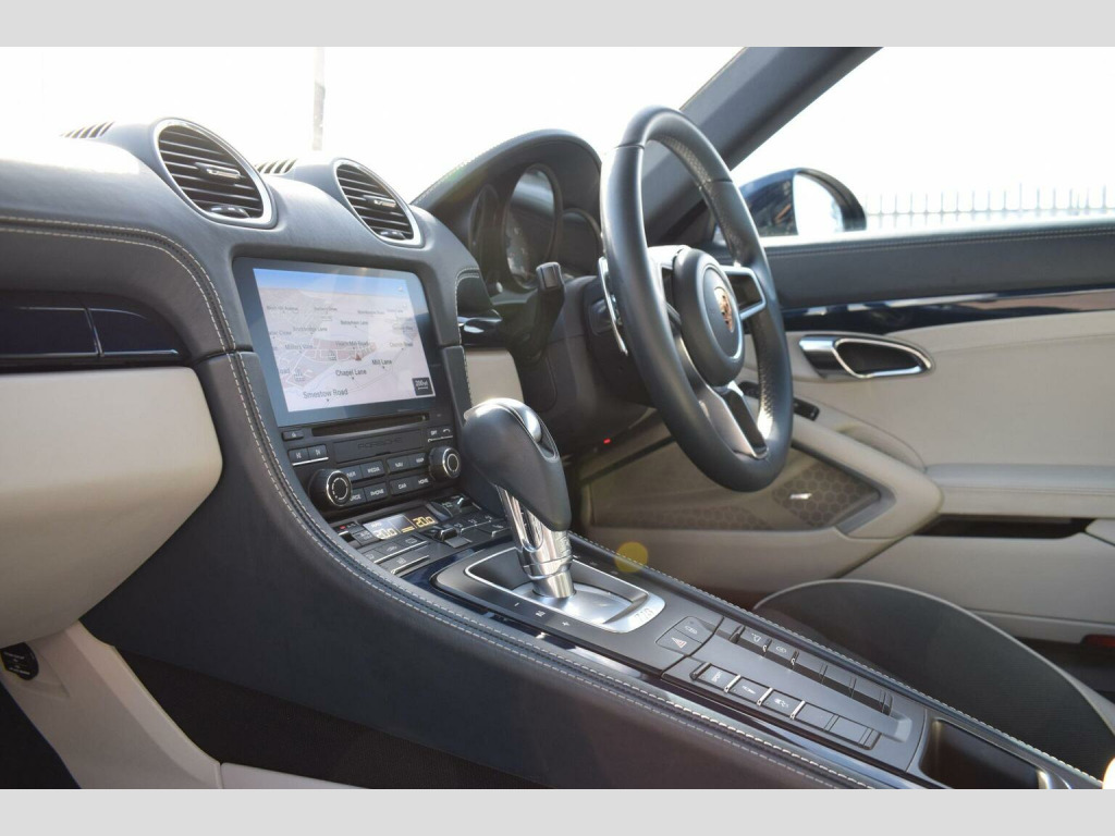 2018 18 Porsche 718 Cayman S 2.5T PDK finished in a beautiful combination of Night Blue Metallic with rare Duo Tone Sport-Tex and Leather Interior (Graphite Blue / Crayon). Just 35200 miles covered which is supported with Porsche and specialist service history. Services completed in 2020 (Porsche), 2022 (Porsche) and 2024 (Specialist inc replacement drive belt) meaning the next is not due until December 2026. Supplied with all correct documentation, handbooks etc and this car has been subjected to our usual strict pre delivery inspection and preparation process ensuring all cosmetic and mechanical elements are in good order including 4 matching Pirelli tyres with good tread. Cosmetic condition is equally excellent both inside and out, this car having been truly cherished, enthusiast owned and maintained. Boasting an incredible specification on top of the sought after paint and interior combination thanks to an extensive list of optional extras fitted from new and a list price of £66000. Options include: BOSE Surround Sound System, PASM - Porsche Active Suspension Management with Ride Height Lowered by 10mm, 20in Alloy Wheels - 911 Turbo, Sports Seats Plus - Electrical 2 Way, Exterior Package Painted, Interior Package Painted, Model Designation Painted, Park Assist - Front and Rear, Two-Zone Automatic Climate Control, Wheel Centres with Full-Colour Porsche Crest, Seat Heating, Fuel Filler Cap with Aluminium Look Finish, Seat Belts - Silver Grey, Porsche Crest on Head Restraints and Storage Compartment Lid with Porsche Crest. , UK wide delivery available. Please get in touch for details. , PAYMENT: We accept debit cards for payments up to £500. For larger payments we accept BACS (bank transfer) only. Please check transfer processing times and limits with your bank if you plan to pay on collection as we are unable to release cars without cleared funds. Please also bring anything you may need to access your online banking on the day including securekeys, card readers etc. We accept cash payments up to £9000 which are subject to a 2% banking fee. Please note a £250 admin fee is applicable for purchases funded by third party finance lenders. , Please note: Although every effort is made to ensure the accuracy of every advert and vehicle specification, system and human errors can occur from time to time and it is advised to check for confirmation.