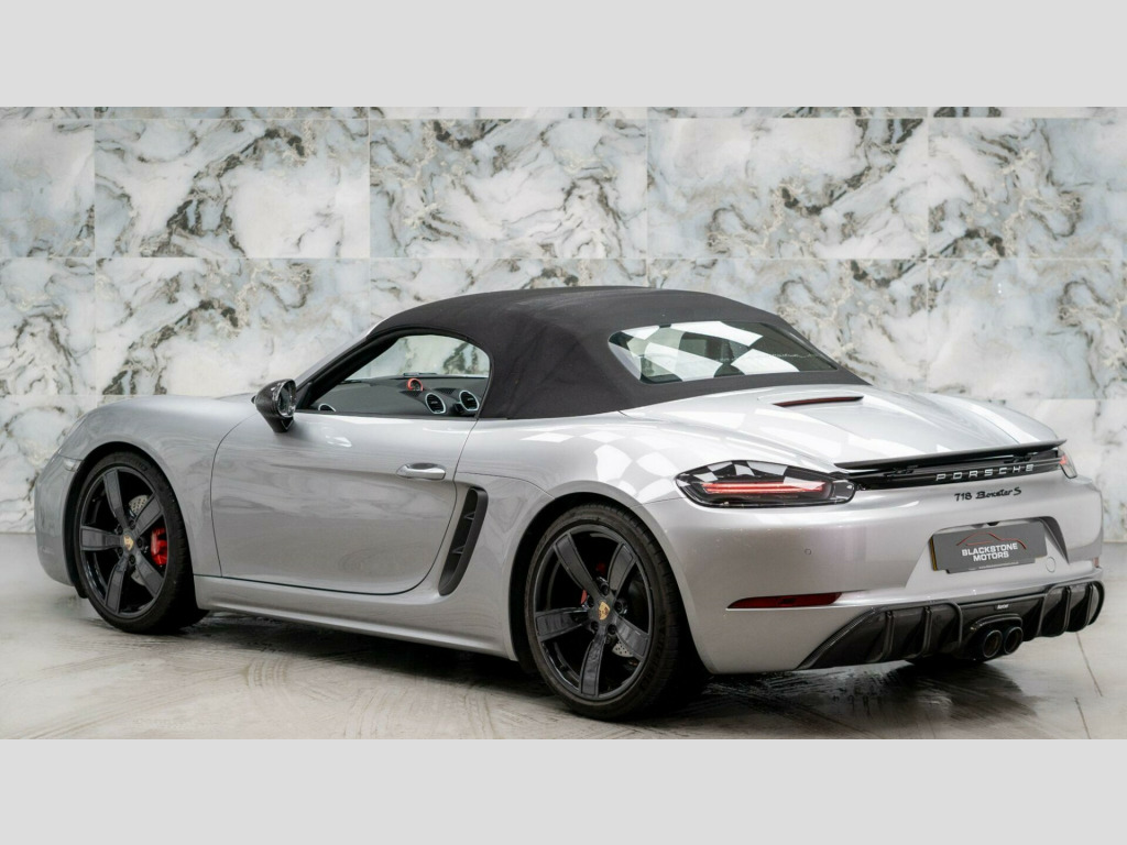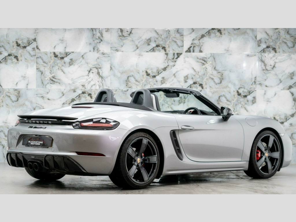 This particular example is a 2 owner vehicle from new, finished in GT Silver metallic paintwork with Black leather interior. It benefits with a FULL Porsche service history and is still under manufacturers warranty until September 2026.The high specification of this Porsche includes:- Adaptive Cruise Control- PASM - Porsche Active Suspension Management with Ride Height Lowered by 10mm- BOSE Surround Sound System- Adaptive Sports Seats Plus - Electrical 18 Ways- Heated Multifunction Steering Wheel- ParkAssist - Front and Rear with Reversing Camera- Power Steering Plus- Porsche Entry- LED Main Headlights including Porsche Dynamic Light System - PDLS- Sports Tailpipes - Black- 20in Alloy Wheels - Carrera Sport- Porsche Crest on Head Restraints- Wheels Painted in High Gloss Black8.9% Low rate finance packages available, HP available, LP available, ****Apply for finance on our website for an instant decision****, 5 days driveway insurance available.Take advantage of our full bespoke in house detailing package to suit your needs, inclusive of Paint Protection Film (XPEL), Paint Correction, Nano Ceramic Coating, Trackers, Immobilisers and Bodykits. All of our work can be found on our social media Instagram blackstonemotorsuk & limitlessdetailinguk aptive cruise control, pasm - porsche active suspension management with ride height lowered by 10mm, bose surround sound system, adaptive sports seats plus - electrical 18 ways, heated multifunction steering wheel, parkassist - front and rear with reversing camera, power steering plus, porsche entry, led main headlights including porsche dynamic light system - pdls, sports tailpipes - black, 20in alloy wheels - carrera sport, porsche crest on head restraints, wheels painted in high gloss black, 12-volt sockets in passenger footwell and centre console storage compartment, 19in alloy wheels - boxster s, 718 logo on gear lever, adjustable fan with air recirculation and defroster functions, air conditioning with integrated active carbon filter, alarm system, anti-theft wheel bolts, ascending centre console with an uncovered storage compartment and a closed storage compartment, automatic deploying rear wing, automatic headlight activation including welcome home lighting, bi-xenon headlights with integrated led daytime running lights, brake calipers - red, clothes hooks on seat backrests, convertible top colour - black, cruise control, dashboard trim strips and centre console trim in silver colour - high-gloss, digital displays for vehicle speed - chosen gear - odometer -trip meter and time, digital radio, door panel armrest and centre console main storage compartment lid in smooth finish leather, door sill guards - model designation logo, electric windows with one-touch operation and door seal protection function, electrically adjustable heated exterior mirrors on door waist rails - aspherical on drivers side, electrically controlled parking brake, electromechanical direct steering with variable steering ratio and steering pulse generator, engine water cooled with thermal management, fixed roll-over bar, floor mats, full size airbags for driver and front passenger, fully automatic fabric hood, green tinted heat-insulating glass, instrument cluster with central rev counter and high resolution 4.6inch colour display, instrument dials in black with rev counter in silver, intelligent lightweight in aluminium-steel-composite construction, led reading lights - orientation lighting and ignition lock - additionally luggage compartment and glove box lighting, led taillights and integral 4-point brake lights and reversing lights, lightweight spring-strut axle front and rear, luggage compartments at front and rear, net wind deflector, pcm - porsche communication management - include navigation, porsche logo on accent strip and model designation on rear apron in silver colour - high gloss, park assist - front and rear, porsche side impact protection - posip, porsche stability management - psm including abs with extended brake functions, remote central locking with immobiliser, sport button to activate dynamic driving setting for engine, seat heating, separate auxiliary lights in the front end with led indicators and position lights, side air intake with 2 grilles in black, sound package plus, sports seats with electric backrest adjustment and manual fore-aft and height adjustment, sports steering wheel - diameter 375mm with manual fore-aft and height adjustment, sports-look pedals and footrest, storage compartment in each door, twin-tract sports exhaust system with central twin tailpipe in stainless steel, two individual cup holders - integrated into dashboard trim strip, tyre pressure monitoring system - tpm, tyre repair kit, windscreen washer system with two wiper speeds and washer jets, windscreen with darker grey tint at the top to reduce glare