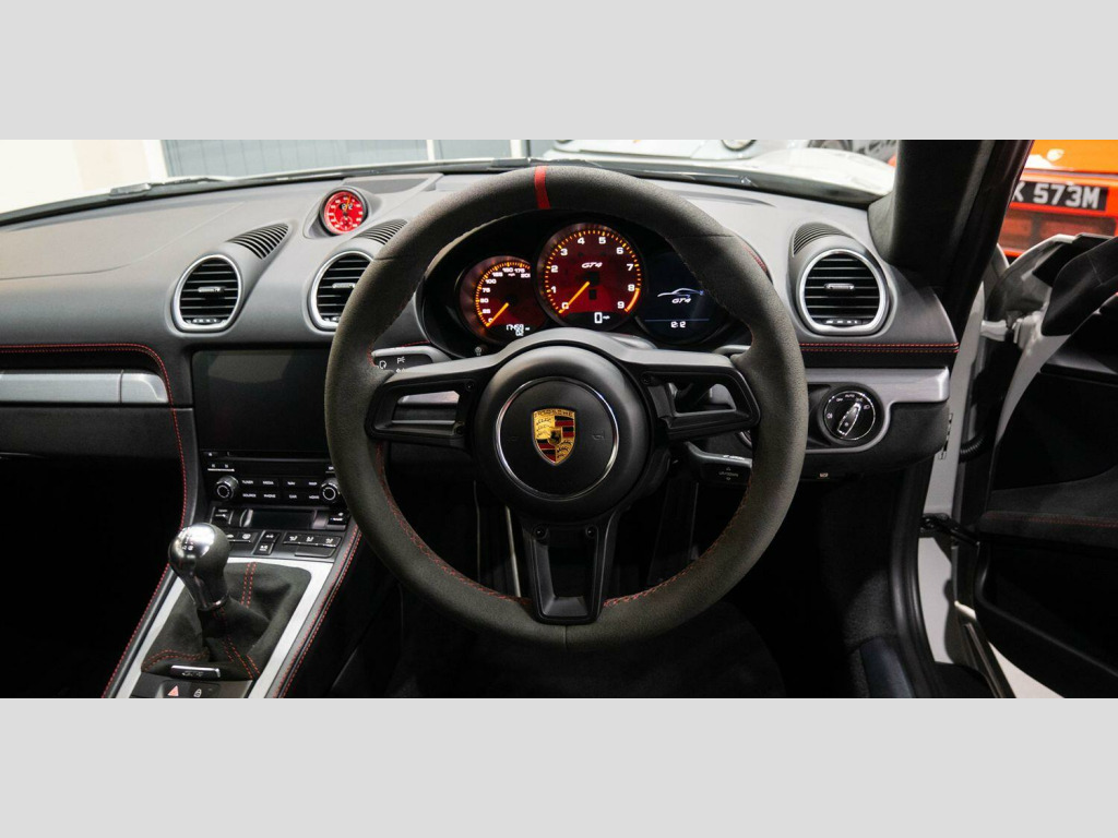 Here at Lakeside Classics we are pleased to offer this 718 GT4 presented in Crayon with contrasting Black Race Tex/Leather Interior. , Over and above a standard 718 GT4 specification the original owner has opted for the following options:, - Chrono Package and Preparation for Lap Trigger, - Brake Calipers Painted in Black High Gloss, - Porsche Logo Painted in Satin Black, - LED Main Headlights Including Porsche Dynamic Lighting System (PDLS), - Decorative Stitching in Contrasting Colour, - Steering Wheel Rim With Top Centre Marking, - Model Designation Painted, - Full Bucket Seats, - Brushed Aluminium Interior Package, - Instrument Dials in Guards Red, - Chrono stopwatch Instrument Dials Guards Red, - Seat Belts in Guards Red, , This car boasts a Full Porsche Service History as outlined below;, - 05/22, 2207 miles, Porsche Centre Silverstone, - 06/24, 9418 miles, Porsche Centre Exeter, , The car is complete with all books and manuals. , Please contact us today for more information. Personalised video available on request. Finance available. Viewing By Appointment Only. , Lakeside Approved Pre Owned Cars. , Every vehicle that bears the Lakeside Approved Status has been professionally prepared by our highly qualified Technicians to the highest standards. Thanks to extensive documented vehicle history and Lakeside Classics Warranty, we ensure more than just certified quality. We create trust. , Our Commitment:, , - 6 Month Lakeside Classics Warranty*, - 12 Months MOT, - Minimum 90 Point Mechanical Inspection , - 360 Degree Interior & Exterior Inspection , - Independent History and Mileage Checks, - All routine servicing and maintenance due will have been carried out as a minimum. - Full Valet and Final Quality Inspection. , *Warranty does not cover wear and tear items.