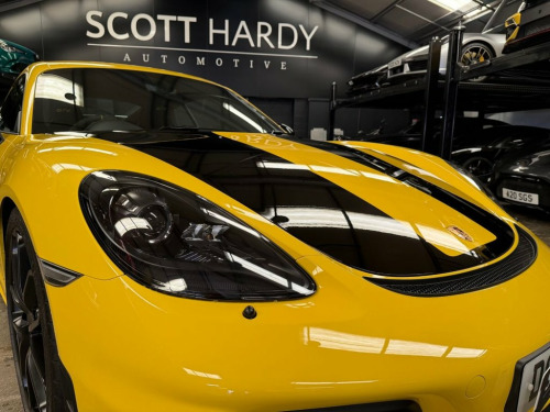 Scott Hardy automotive are proud to present this stunning PORSCHE 718 CAYMAN 4.0 GT4 12-Volt Sockets in Passenger Footwell an, 20in Alloy Wheels - 718 Cayman GT4 in Sa, AUTO BLIP Button to Activate Automatic R, Adjustable Chassis For Track Use, Adjustable Fan with Air Recirculation an, Air Conditioning with Integrated Active , Alarm System, Anti-Theft Wheel Bolts, Ascending Centre Console with an Uncover, Automatic Headlight Activation including, Bi-Xenon Headlights with Integrated LED , Brake Calipers - Red, Clothes Hooks on Seat Backrests, Cruise Control, Digital Displays for Vehicle Speed - Cho, Digital Radio, Door Opening Loops in Silver, Door Panel Armrest and Centre Console Ma, Door Sill Guards - Model Designation Log, Dynamic Gearbox Mount System, Electric Windows wit