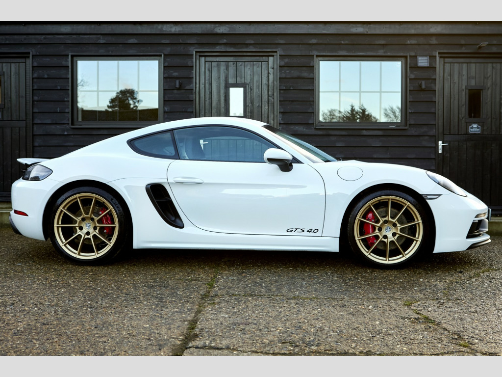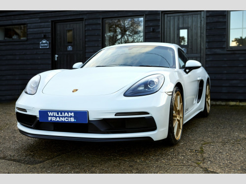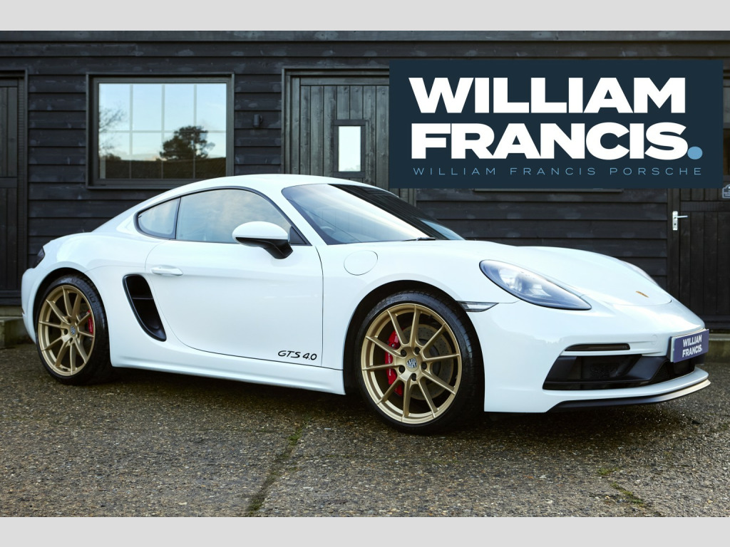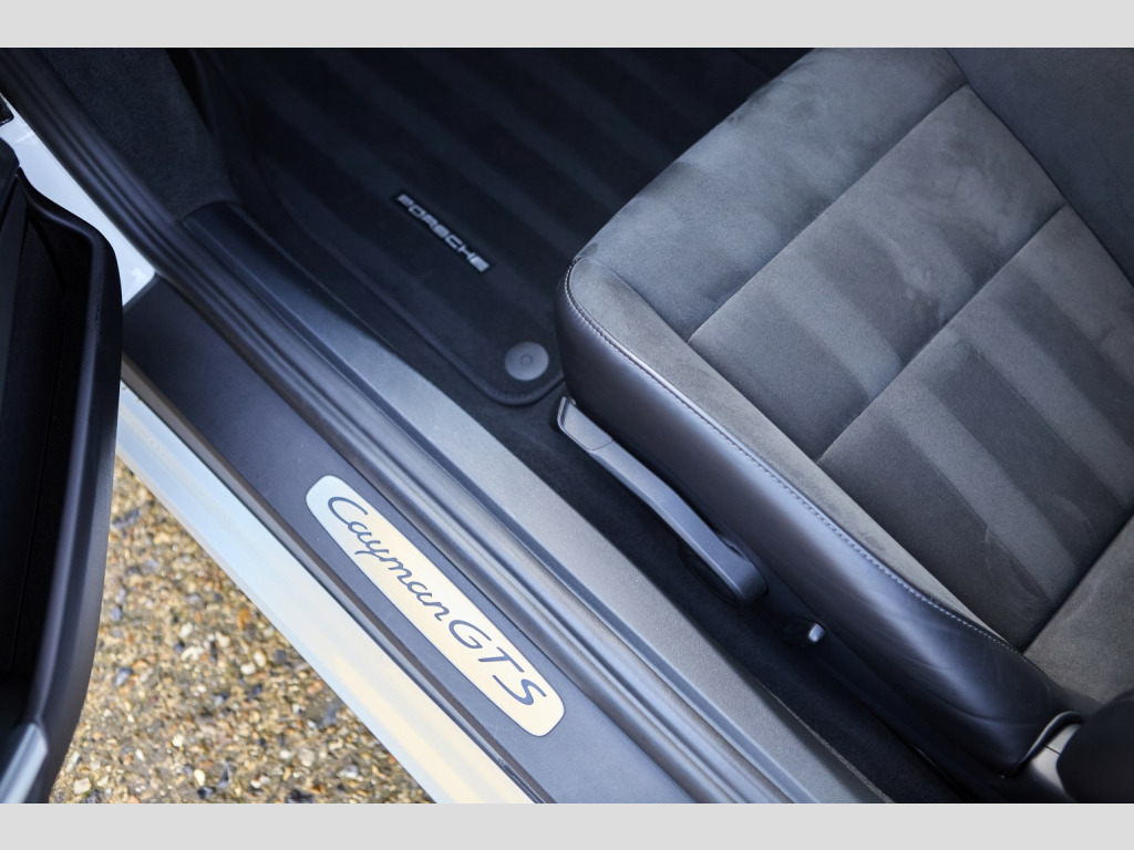 Arriving shortly, another great 718 4.0 GTS Manual with lovely low owners and mileage. , Finished in striking Pure white with contrasting Gold wheels , , Notable factory specification includes, , XLW Sports tailpipe cover, Black, 9WT MIRRORLINK (CARPLAY/NLB), IU5 With connect package 5, UI2 2 X USB/IPOD interface, 121 Sports-look pedals, 340 Wheel rims painted in basic colour, 7I2 VTS security package (with PCC), 594 Alcantara rooflining, 800 Bi-Xenon dynamic AHBA (Black), 275 Manual anti-dazzle interior mirror, 085 Fuel tank, 64-litre, QR5 Sport Chrono Package Plus, 858 Sports steering wheel GT, leather, 9VK Sound package 1/sound package, 655 Mechanically adjustable steering column with ELV, 153 Middle radiator, 7UG Navigation device, High, 393 RS Spyder Design wheel, 20, I8L Premium radio (2nd gen.), UX7 TPM valve, Black, 006 Cayman GTS 4.0, 022 Black-coloured instrument dials, instrument cluster, 025 Black-coloured instrument dials, stopwatch, 061 England version, 070 Pedestrian protection, 099 Right-hand drive version, 122 Footrest, sports look, 140 Dynamic engine mounts (PADM), 176 Sports exhaust system, 196 Battery, 80 Ah, 211 Licence plate holder version 3, 220 Locking differential 40 %, 317 Sports seat Plus, left, manual, 2-way, 318 Sports seat Plus, right, manual, 2-way, 426 Without rear window wiper, 444 Anti-theft lock, wheel bolts THATCHAM, 446 Concave wheel centres with full-colour Porsche Crest, 466 Rear fog light, right, 475 PASM electronic damper control, 480 6-speed manual transmission, 482 Tire Pressure Monitoring TPM, 433 MHz, 492 Headlights for left-hand traffic, 493 Balance weights, Black, 521 Tilt sensor, 534 Theft security system, 433 MHz, 536 Alarm siren, 555 Black seat belts, 567 Windscreen tinted, upper part darker coloured, 572 Manual air-conditioning system, 585 Cupholder, 951 Seat covers front, Alcantara/leather/leather, 975 Alcantara interior, 991 Steering wheel airbag module in leather, XAT Sport Design package, XYC Shift lever, aluminium, XXP Tail lights, darkened, 342 Seat heating, left/right seat, 642 Start/Stop function, QH1 Voice control, QV3 HD radio reception (high-definition), 9ZX Mobile phone preparation