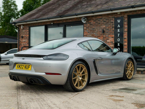Warford Cars are proud to present this stunning Porsche Cayman 4.0 GTS Manual in GT Silver Metallic with Black Leather and Alcantara Interior. The car is exceptionally well specified from new with just shy of £14,000 worth of factory options including GTS Interior Package, Adaptive Sports Seats Plus (18-way, electric), LED Headlights including Porsche Dynamic Light System Plus (PDLS Plus), Alcantara Package GTS in Conjunction with GTS Interior Package, ParkAssist (front and rear) with Reversing Camera, BOSE Surround Sound-System, Door Sill Guards in Carbon - Illuminated, Brake Calipers Painted in Black (high-gloss), Two-Zone Automatic Climate Control, Lane Change Assist, Automatically Dimming Mirrors with Integrated Rain Sensor, Seat Heating, Sun Visors in Alcantara, Cruise Control, Electrically Folding Exterior Mirrors, Light Design Package, HomeLink (programmable garage door opener), Sports Suspension (-20 mm) with PASM, Storage Compartment Lid in Alcantara with Porsche Crest, Headlight Cleaning System Covers Painted, PORSCHE Logo in Satin Black and Fuel Filler Cap with Aluminium Look Finish. The car comes with Front End PPF, OPF Exhaust Enhancement, Lightweight Clutch Flywheel and serviced 25/08/2023 at Ninemeister Porsche Specialist in Warrington and 07/08/2025 at 10,276 miles at Porsche Specialist Weissach with accompanying health check. The car comes complete with full book pack / manuals and 2 keys from new. Viewings Strictly by Appointment Only. Competitive Finance Options Available. Extended Warranty Available. Professional GTechniq Accredited Detailing Available. Call directly to arrange a viewing on 07537 165874