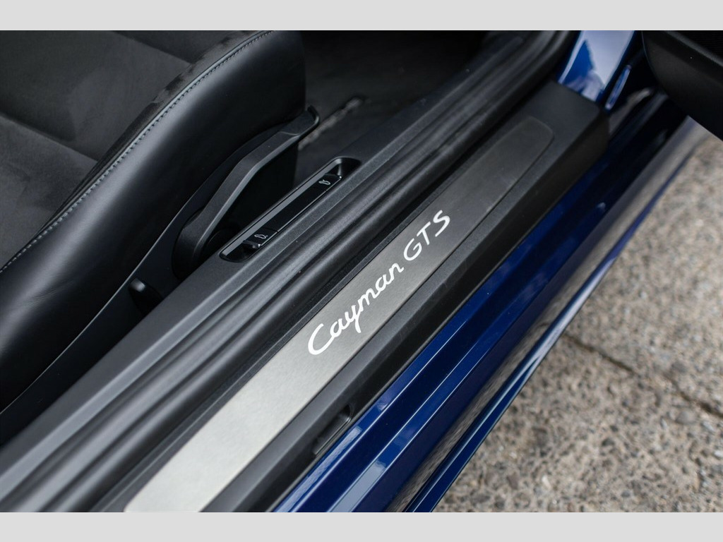 Porsche Cayman GTS, Gentian Blue, 4.0l Flat 6, Manual, 2700 miles, Lanoguard Underbody Protection. We are thrilled to present this breathtaking Gentian Blue Porsche Cayman GTS, a true automotive gem that combines style, performance, and craftsmanship. To truly appreciate its quality, we highly recommend viewing the pictures - each one captures the car’s dynamic presence, with its pristine finish and subtle details. This Cayman GTS is the epitome of Porsche excellence. This Porsche Cayman GTS is a rare find. Most used examples have seen multiple owners, making this one-owner, low-mileage car a standout. To truly appreciate its balanced chassis, Porsche craftsmanship, and exceptional condition, you must see it in person. We also offer additional services such as ceramic coatings or paint protection film (PPF), should you wish to enhance its already flawless finish before taking delivery. This isn’t just a car; it’s a driving experience. Please be sure to view all images including further details. 12-Volt Sockets in Passenger Footwell and Centre Console Storage Compartment,20in Alloy Wheels - 718 Sport - Satin Black,718 Logo on Gear lever,Adjustable Fan with Air Recirculation and Defroster Functions,Air Conditioning with Integrated Active Carbon Filter,Alarm System,Anti-Theft Wheel Bolts,Ascending Centre Console with an Uncovered Storage Compartment and a Closed Storage Compartment,Automatic Deploying Rear Wing,Automatic Headlight Activation including Welcome Home Lighting,Bi-Xenon Headlights with Integrated LED Daytime Running Lights,Brake Calipers - Red,Clothes Hooks on Seat Backrests,Dashboard Trim Strips and Centre Console Trim in Silver Colour - High-Gloss,Digital Displays for Vehicle Speed - Chosen Gear - Odometer -Trip Meter and Time,Digital Radio,Door Sill Guards - Model Designation Logo,Dynamic Gearbox Mount System,Electric Windows with One-Touch Operation and Door Seal Protection Function,Electrically Adjustable Heated Exterior Mirrors on Door Waist Rails - Aspherical on Drivers Side,Electrically Controlled Parking Brake,Electromechanical Direct Steering with Variable Steering Ratio and Steering Pulse Generator,Engine Water Cooled with Thermal Management,Floor Mats,Full Size Airbags for Driver and Front Passenger,Green Tinted Heat-Insulating Glass,Instrument Cluster with Central Rev Counter and High Resolution 4.6inch Colour Display,Instrument Dials and Rev Counter in Black with GTS Logo,Intelligent Lightweight in Aluminium-Steel-Composite Construction,LED Reading Lights - Orientation Lighting and Ignition Lock - Additionally Luggage Compartment and Glove Box Lighting,LED Taillights and Integral 4-Point Brake Lights and Reversing Lights,Lightweight Spring-Strut Axle Front and Rear,Luggage Compartments at Front and Rear,PASM - Porsche Active Suspension Management with Ride Height Lowered by 20mm,PCM - Porsche Communication Management - Include Navigation,PORSCHE Logo on Accent Strip and Model Designation on Rear Apron in Silver Colour - High Gloss,Park Assist - Front and Rear,Performance-Orientated Shift Indicator in the Colour Display of the Instrument Cluster,Porsche Side Impact Protection - POSIP,Porsche Stability Management - PSM with ABS with Advance Brake Functions,Porsche Torque Vectoring - PTV with Mechanically Locking Rear Differential,Remote Central Locking with Immobiliser,Roof Lining in Race-Tex,Seat Heating,Separate Auxiliary Lights in the Front End with LED Indicators and Position Lights,Side Air Intake with Grille in Black,Side Window Trims in Black,Sound Package Plus,Sport Chrono Package including Mode Switch,Sports Seats Plus - Electrical 2 Way,Sports-Look Pedals and Footrest,Storage Compartment in Each Door,Twin-tract Sports Exhaust System with Two Tailpipes in Stainless Steel in Black High-Gloss,Two Individual Cup Holders - Integrated into Dashboard Trim Strip,Tyre Pressure Monitoring System - TPM,Wheel Centres with Full-Colour Porsche Crest,Wide Opening Rear Hatch with Heated Screen,Windscreen Washer System with Two Wiper Speeds and Washer Jets,Windscreen with Darker Grey Tint at the Top to Reduce Glare,Heated Steering Wheel