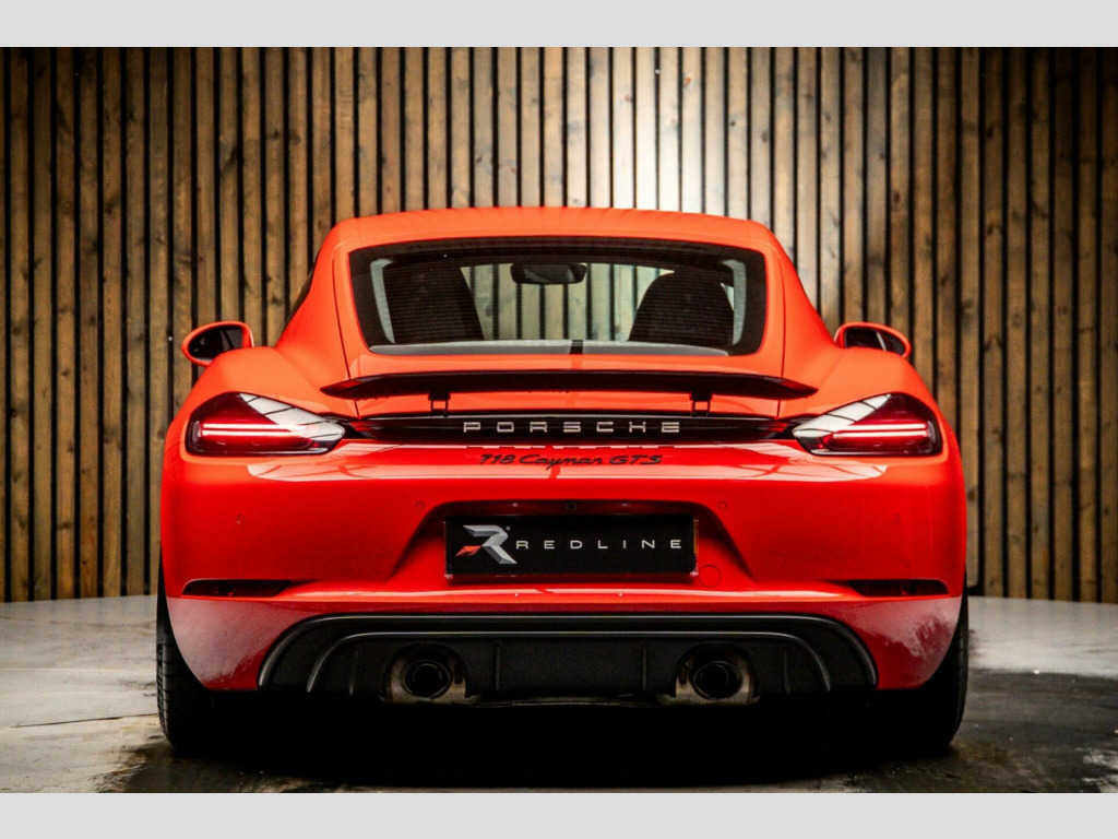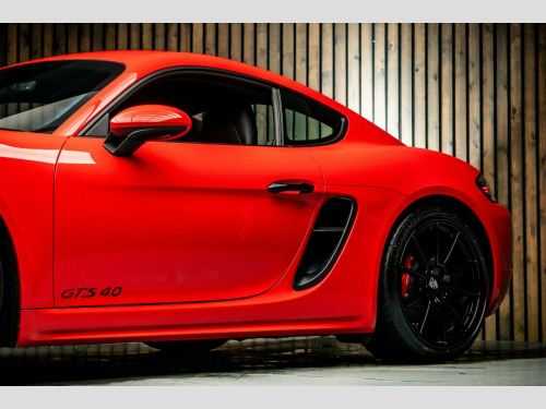 This 2023 Porsche 718 Cayman GTS offers an exceptional driving experience, boasting a powerful 4.0L petrol engine and meeting Euro 6 emission standards. Its striking appearance is enhanced by a rear wing and door handles, both finished in high gloss black. Inside, you will find comfort and convenience with air conditioning featuring an active carbon filter and heated seats. The Bi-Xenon headlights with integrated LED daytime running lights ensure excellent visibility.The performance of this GTS variant is truly remarkable, achieving 0-62mph in just 4.0 seconds, demonstrating its superior acceleration compared to other vehicles in its class. Furthermore, its placement in a low insurance group makes it a more accessible and cost effective choice for owners.. 12-Volt Sockets in Passenger Footwell and Centre Console Storage Compartment, 20in Alloy Wheels - 718 Sport - Satin Black, 718 Logo on Gear lever, Adjustable Fan with Air Recirculation and Defroster Functions, Air Conditioning with Integrated Active Carbon Filter, Alarm System, Anti-Theft Wheel Bolts, Ascending Centre Console with an Uncovered Storage Compartment and a Closed Storage Compartment, Automatic Deploying Rear Wing, Automatic Headlight Activation including Welcome Home Lighting, Bi-Xenon Headlights with Integrated LED Daytime Running Lights, Black Model Designation GTS 4.0 on Doors, Brake Calipers - Red, Clothes Hooks on Seat Backrests, Cruise Control, Dashboard Trim Strips and Centre Console Trim in Silver Colour - High-Gloss, Digital Displays for Vehicle Speed - Chosen Gear - Odometer -Trip Meter and Time, Digital Radio, Door Panel Armrest and Centre Console Main Storage Compartment Lid in Smooth Finish Leather, Door Sill Guards - Model Designation Logo, Dynamic Gearbox Mount System, Electric Windows with One-Touch Operation and Door Seal Protection Function, Electrically Adjustable Heated Exterior Mirrors on Door Waist Rails - Aspherical on Drivers Side, Electrically Controlled Parking Brake, Electromechanical Direct Steering with Variable Steering Ratio and Steering Pulse Generator, Engine Water Cooled with Thermal Management, Floor Mats, Full Size Airbags for Driver and Front Passenger, GT Sports Steering Wheel, Green Tinted Heat-Insulating Glass, Instrument Cluster with Central Rev Counter and High Resolution 4.6inch Colour Display, Instrument Dials and Rev Counter in Black with GTS Logo, Intelligent Lightweight in Aluminium-Steel-Composite Construction, LED Reading Lights - Orientation Lighting and Ignition Lock - Additionally Luggage Compartment and Glove Box Lighting, LED Taillights and Integral 4-Point Brake Lights and Reversing Lights, Lightweight Spring-Strut Axle Front and Rear, Luggage Compartments at Front and Rear, PASM - Porsche Active Suspension Management with Ride Height Lowered by 20mm, PCM - Porsche Communication Management - Include Navigation, PORSCHE Logo on Accent Strip and Model Designation on Rear Apron in Silver Colour - High Gloss, Park Assist - Front and Rear, Porsche Side Impact Protection - POSIP, Porsche Stability Management - PSM Including ABS with Extended Brake Functions, Porsche Torque Vectoring - PTV with Mechanically Locking Rear Differential, Remote Central Locking with Immobiliser, Roof Lining in Race-Tex, Seat Heating, Separate Auxiliary Lights in the Front End with LED Indicators and Position Lights, Side Air Intake with Grille in Black, Side Window Trims in Black, Sound Package Plus, Sport Chrono Package including Mode Switch, Sports Seats Plus - Electrical 2 Way, Sports-Look Pedals and Footrest, Storage Compartment in Each Door, Twin-tract Sports Exhaust System with Two Tailpipes in Stainless Steel in Black High-Gloss, Two Individual Cup Holders - Integrated into Dashboard Trim Strip, Tyre Pressure Monitoring System - TPM, Tyre Repair Kit, Wheel Centres with Full-Colour Porsche Crest, Wide Opening Rear Hatch with Heated Screen, Windscreen Washer System with Two Wiper Speeds and Washer Jets, Windscreen with Darker Grey Tint at the Top to Reduce Glare, Rear Wing Painted in Black - High-Gloss, Door Handles Painted in Black - High-Gloss.