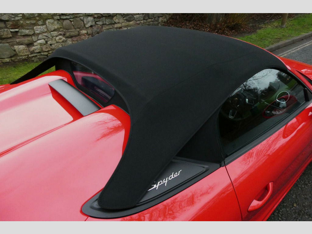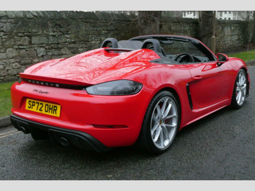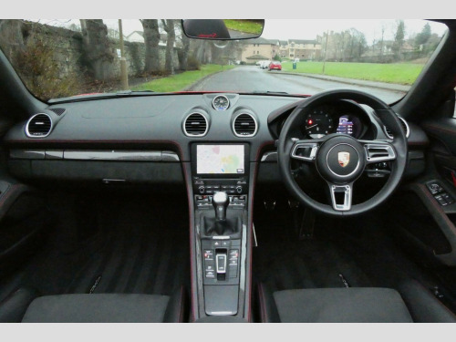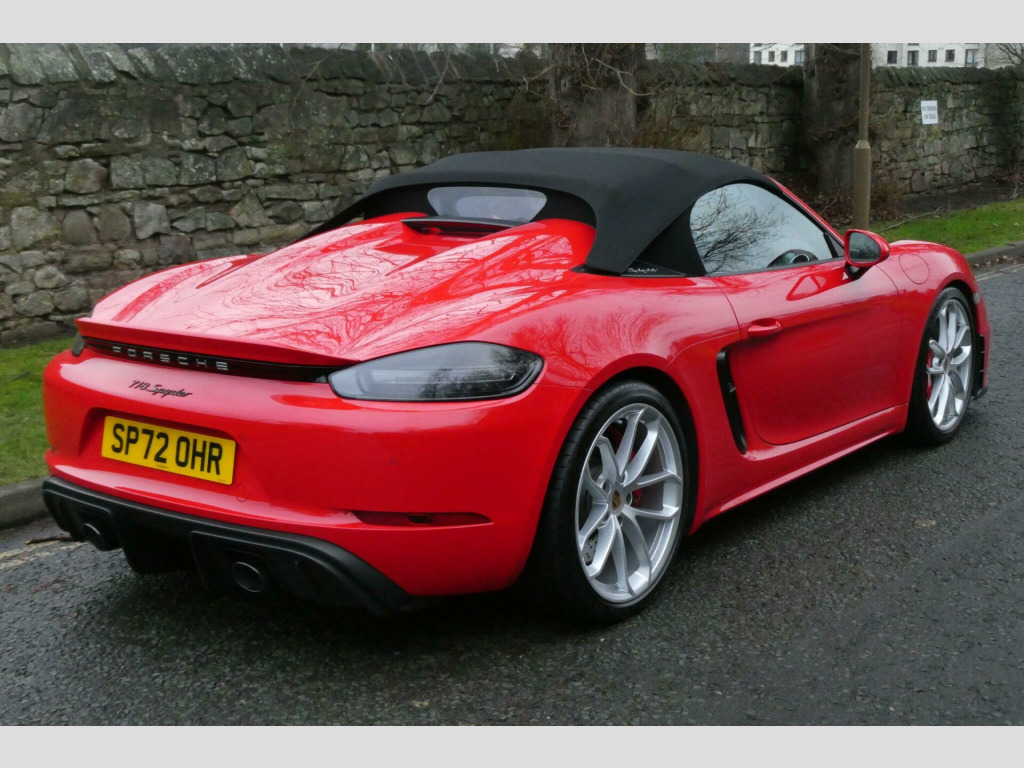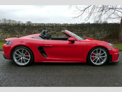 We Are Delighted To Offer This Outstanding Rare 1 Owner From New, Porsche Boxster 718 Spyder With A Full Porsche Service History & Benefiting From A Porsche Warranty Until September 2026. Finished In Guards Red With Carbon Bucket Seats, See The Following Perfect Factory Specification Below. Please Call Andrew or Ross With Any Further Details You May Need Or To Book An Appointment To See With Your Own Eyes As We Are Sure You Will Be Delighted In What You Find. The Condition Is Outstanding Throughout And A Credit To The Previous & Only Owner.. 12-Volt Sockets in Passenger Footwell and Centre Console Storage Compartment, 20in Alloy Wheels - 718 Spyder in Silver Colour with Sports Tyres, 718 Logo on Gear lever, AUTO BLIP Button to Activate Automatic Rev-Matching for Downshifts, Adjustable Fan with Air Recirculation and Defroster Functions, Air Conditioning with Integrated Active Carbon Filter, Alarm System, Anti-Theft Wheel Bolts, Ascending Centre Console with an Uncovered Storage Compartment and a Closed Storage Compartment, Auto-Deploying 718 Spyder Specific Rear Wing, Automatic Headlight Activation including Welcome Home Lighting, Bi-Xenon Headlights with Integrated LED Daytime Running Lights, Brake Calipers - Red, Chrono Package with an Analogue Stopwatch - Digital Stopwatch Function and Performance Display in PCM, Clothes Hooks on Seat Backrests, Convertible Top Colour - Black, Digital Displays for Vehicle Speed - Chosen Gear - Odometer -Trip Meter and Time, Digital Radio, Door Opening Loops in Black, Door Panel Armrest and Centre Console Main Storage Compartment Lid in Smooth Finish Leather, Door Sill Guards - Model Designation Logo, Dynamic Gearbox Mount System, Electric Windows with One-Touch Operation and Door Seal Protection Function, Electrically Adjustable Heated Exterior Mirrors on Door Waist Rails - Aspherical on Drivers Side, Electrically Controlled Parking Brake, Electromechanical Direct Steering with Variable Steering Ratio and Steering Pulse Generator, Engine Water Cooled with Thermal Management, Fixed Roll-Over Bar, Floor Mats, Front Apron with Large Cooling Intakes, Full Size Airbags for Driver and Front Passenger, GT Sports Steering Wheel, Green Tinted Heat-Insulating Glass, Instrument Cluster with Central Rev Counter and High Resolution 4.6inch Colour Display, Instrument Dials and Rev Counter in Black with White Indices - Scales and Spyder Logo, Intelligent Lightweight in Aluminium-Steel-Composite Construction, Interior Package Painted - Exterior Colour, LED Reading Lights - Orientation Lighting and Ignition Lock - Additionally Luggage Compartment and Glove Box Lighting, LED Taillights and Integral 4-Point Brake Lights and Reversing Lights, Leather Interior Package - without Leather Interior, Lightweight Spring Strut Front Axle - Anti-Roll Bar - Suspension Mountings Partly Ball-Jointed, Lightweight Spring Strut Rear Axle - Helper Springs - Anti-Roll Bar - Suspension Mountings Partly Ball-Jointed, Luggage Compartments at Front and Rear, Manually Operated Lightweight Hood with Electric Locking Function and Two Rear Fins, Net Wind Deflector, PASM - Porsche Active Suspension Management - Variable Damper System with Sports Setup and Ride Height Lowered by 30mm, PCM - Porsche Communication Management - Include Navigation, PORSCHE Logo in Silver Colour High-Gloss on Accent Trim - Model Designation in Satin Black on Rear Apron, Park Assist - Rear, Performance-Orientated Shift Indicator in the Colour Display of the Instrument Cluster, Porsche Side Impact Protection - POSIP, Porsche Stability Management - PSM Including ABS, Porsche Torque Vectoring - PTV with Mechanically Locking Rear Differential, Porsche Track Precision App, Rear Apron Lower Part in Black with Integrated Rear Diffuser, Remote Central Locking with Immobiliser, Seat Heating, Separate Auxiliary Lights in the Front End with LED Indicators and Position Lights, Shortened Gear Lever, Side Air Intake with Grille in Black, Sound Package Plus, Sports Seats Plus - Electrical 2 Way, Sports-Look Pedals and Footrest, Storage Compartment in Each Door, Twin-tract Sports Exhaust System with Two Tailpipes in Stainless Steel in Black High-Gloss, Two Dynamic Streamliners on Aluminium Rear Lid, Two Individual Cup Holders - Integrated into Dashboard Trim Strip, Tyre Pressure Monitoring System - TPM, Windscreen Wiper System with Aero Wiper Blades and Washer Jets, Windscreen with Darker Grey Tint at the Top to Reduce Glare, Full Carbon Bucket Seats, Full Carbon Interior Package, Rear Parking Assist, Cruise Cont.