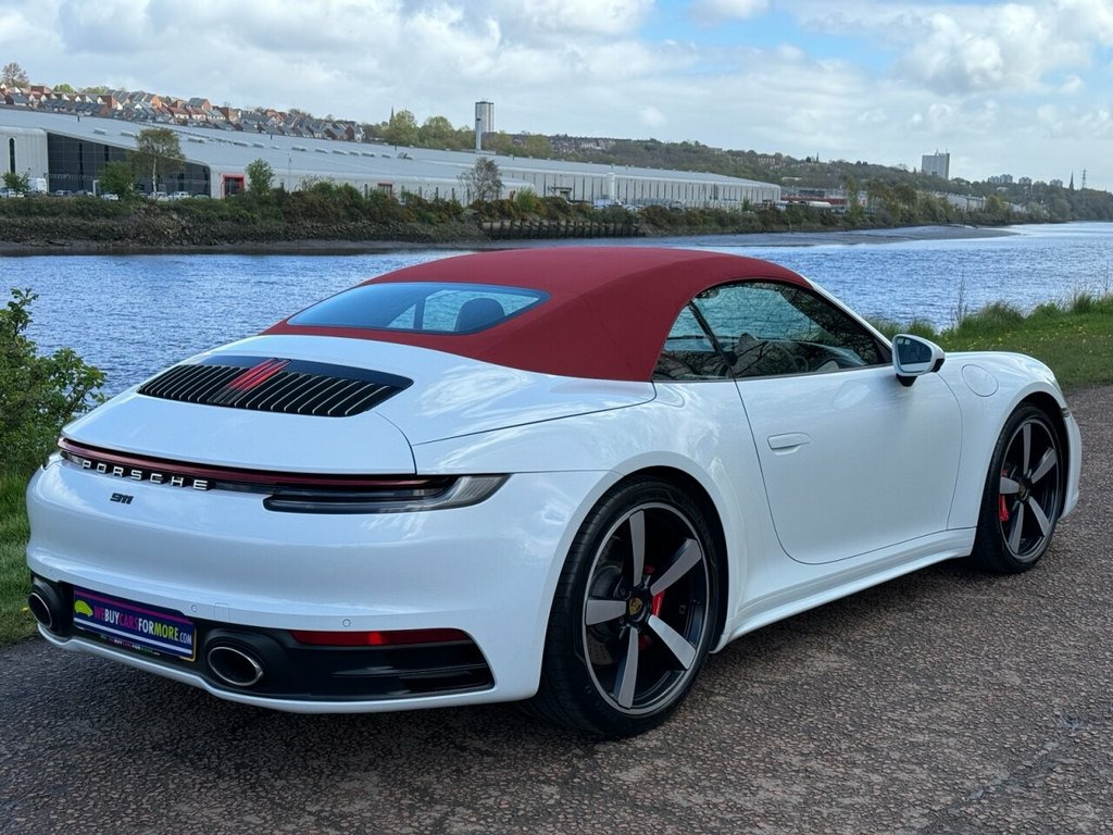 Adaptive Sports seats Plus (18-way, electric) with memory package Sports exhaust system 20/21-inch Carrera Exclusive Design wheels Sport Chrono Package incl. mode switch BOSE® surround sound-system Metallic Paint Wheels painted in satin black Leather interior package Seat ventilation SportDesign sideskirts ParkAssist (front and rear) including Surround View LED-main headlights incl. Porsche Dynamic Light System Plus (PDLS Plus) GT sport steering wheel in Alcantara®, heated Automatically dimming interior and exterior mirrors with integrated rain sensor Porsche Entry & Drive Bordeaux Red seat belts Vehicle key painted with key pouch in Alcantara® Rev counter dial face in white Sport Chrono stopwatch in white Electric folding exterior mirrors including courtesy lighting Porsche Crest embossed on centre console armrest Porsche Crest embossed on headrests Windscreen with grey top-tint Smoker package Carrara White metallic Model designation 911 Total Price of Optional Equipment £16,899 10.9in Centre Display, 12-Volt Socket in Passenger Footwell, 20in Front 21in Rear Alloy Wheels - Carr, 20in Front 21in Rear Alloy Wheels - Carr, Adaptive Sports Seats Plus - Electrical , Auto-Deployed Rear Spoiler, Auto-Deploying Roll-Over Protection Syst, Automatic Headlight Activation including, Brake Calipers with Red Finish, Centre Console Armrest with Embossed Mod, Clothes Hooks on Seat Backrests and on B, Connect Plus, Convertible Top Colour - Black, Convertible Top Colour - Blue, Convertible Top Colour - Brown, Convertible Top Colour - Red, Cruise Control with Speed Limiter, DAB Digital Radio, Digital Display for Selected Gear in Rev, Door Sill Guards - Model Designation Log, Electric