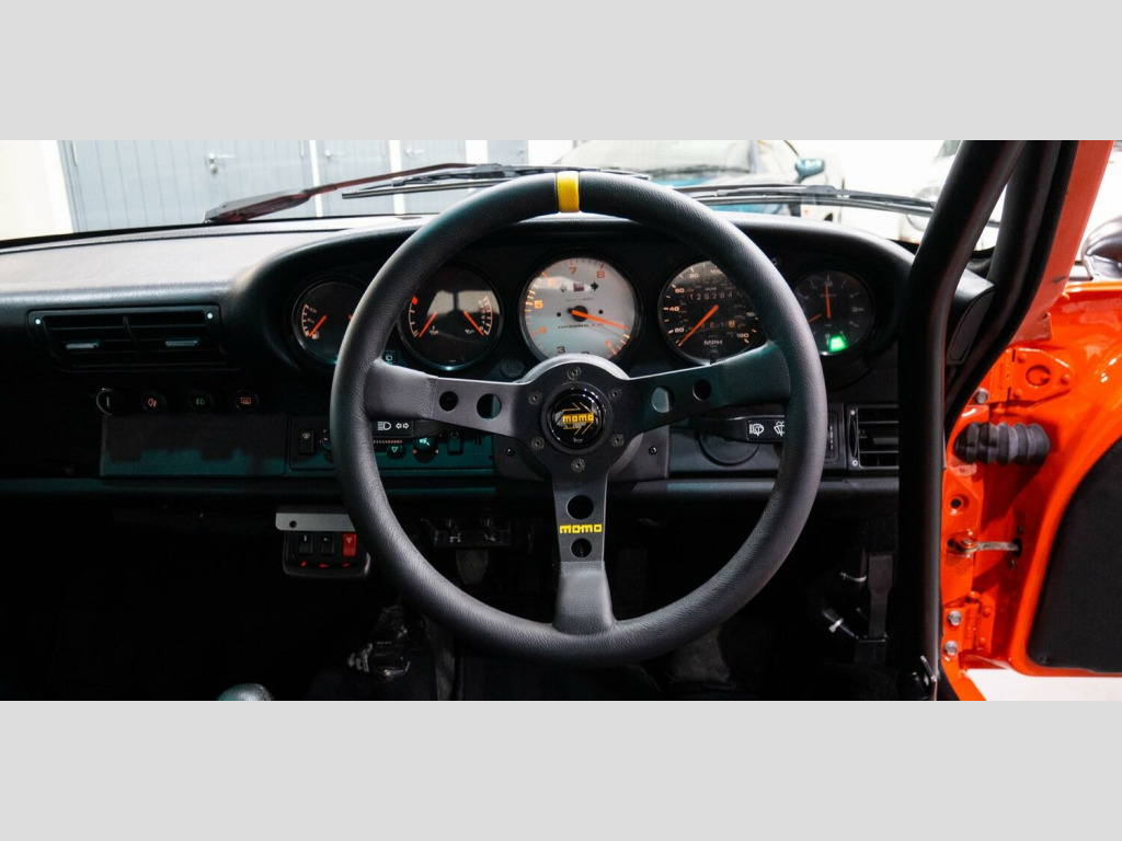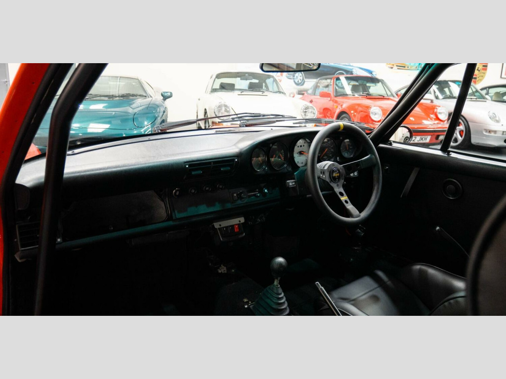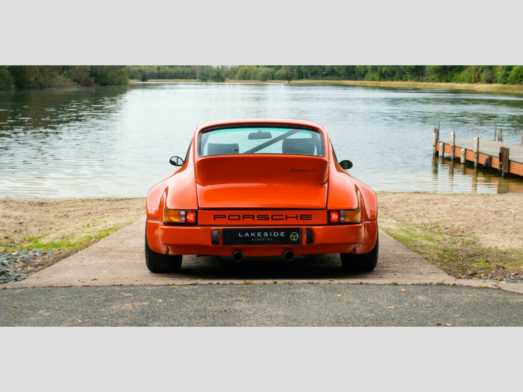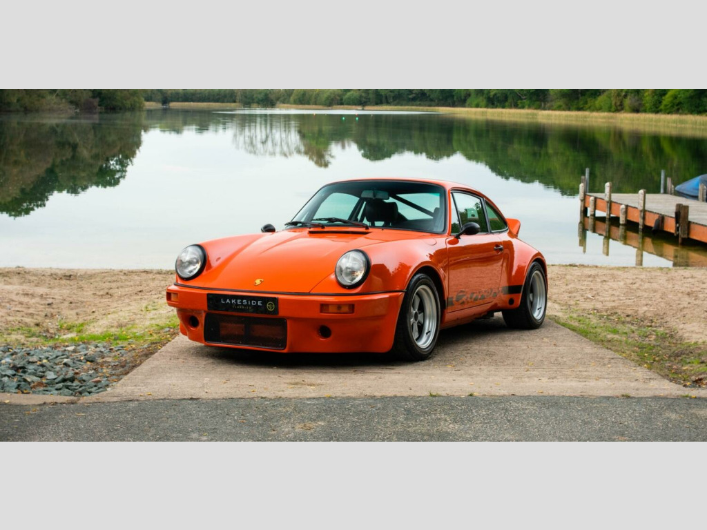Here at Lakeside Classics we are very pleased to offer for sale this beautiful Porsche 911 3.0 RS IROC Evocation. This car has covered less than 3000 miles since its rebuild and is ready to be enjoyed by its next owner. This fine example is finished in the period colour combination of blood orange with black hide. , The donor car was carefully selected for this RS IROC build, with the chosen model being a C16 (UK) 1990 911 (964) Carrera 4. The 964 is believed by many to be be the best donor for Evocations and backdated cars as they offer the perfect blend of classic looks but also benefit from the advances in technology that the late air-cooled Porsches offered such as Power steering and ABS, however they are often not chosen due to the 964 values being so high compared to the earlier 911 alternatives such as the SC and 3.2 Carrera. , The body was stripped and rebuilt with full photographic records to IROC RS specification with steel arches. The removal of sound deadening and thick glue alone took two weeks. The car was married with a lightweight ducktail, front and rear bumpers and bespoke design Custom Cages full roll cage for safety. The aforementioned air conditioning and front oil coolers remain in original position leaving possibility for a large oil cooler in the front opening. Furthermore the car has been fitted with a Light Perlon carpet set, a racing Momo steering wheel and bucket seats helping to complete the feel of a true RS IROC inspired driving experience. The car has been fitted with lightweight doorcards and straps, echoing Ferdinand Porsches philosophy of the importance of the power to weight ratio that contributed to so much of Porsches success in this era. The 3.6 litre engine was rebuilt 60,000 miles ago and has been extremely well maintained since which is clearly evident by all of the invoices in the history file. , The car is complete with an extensive history file throughout the cars life as well as over £30,000 worth of invoices for the rebuild as well as a photographic history. Original manuals and booklets are also included in the sale. , Please contact us today for more information. Personalised video available on request. Finance available. Viewing By Appointment Only. , Lakeside Approved Pre Owned Cars. , Every vehicle that bears the Lakeside Approved Status has been professionally prepared by our highly qualified Technicians to the highest standards. Thanks to extensive documented vehicle history and Lakeside Classics Warranty, we ensure more than just certified quality. We create trust. , Our Commitment:, , - 6 Month Lakeside Classics Warranty*, - 12 Months MOT, - Minimum 90 Point Mechanical Inspection , - 360 Degree Interior & Exterior Inspection , - Independent History and Mileage Checks, - All routine servicing and maintenance due will have been carried out as a minimum. - Full Valet and Final Quality Inspection. , *Warranty does not cover wear and tear items.