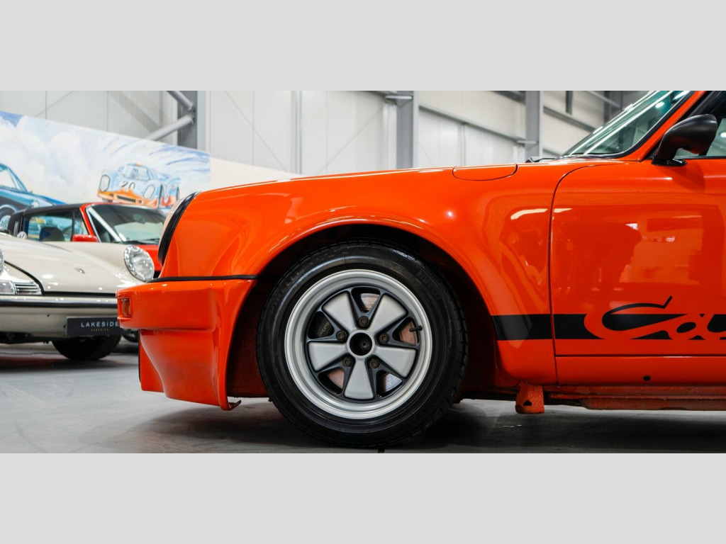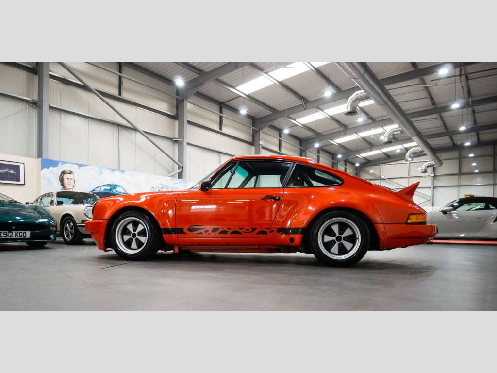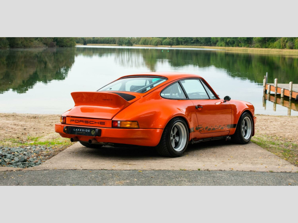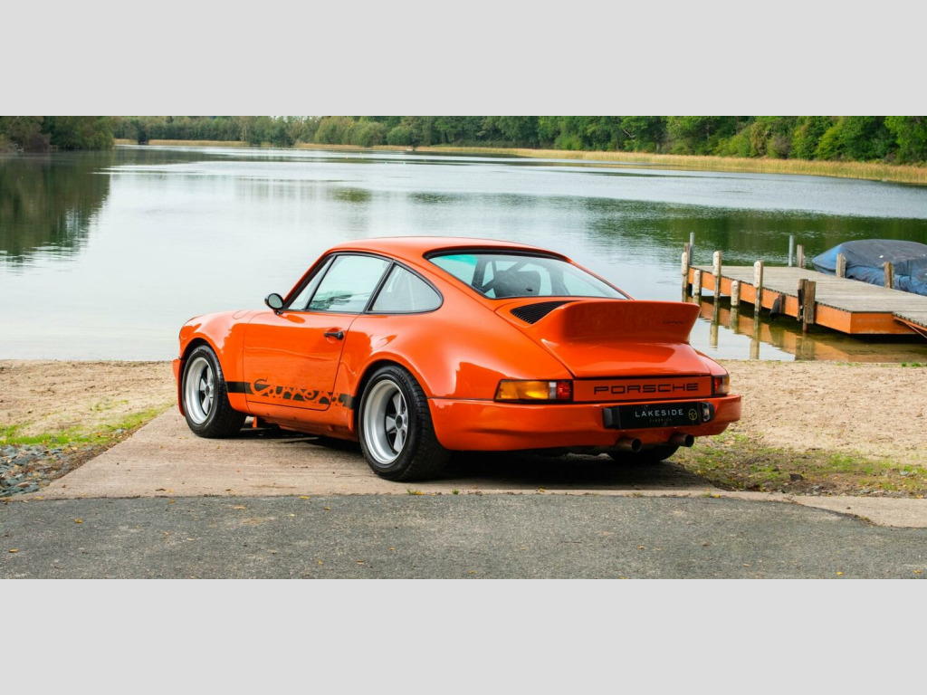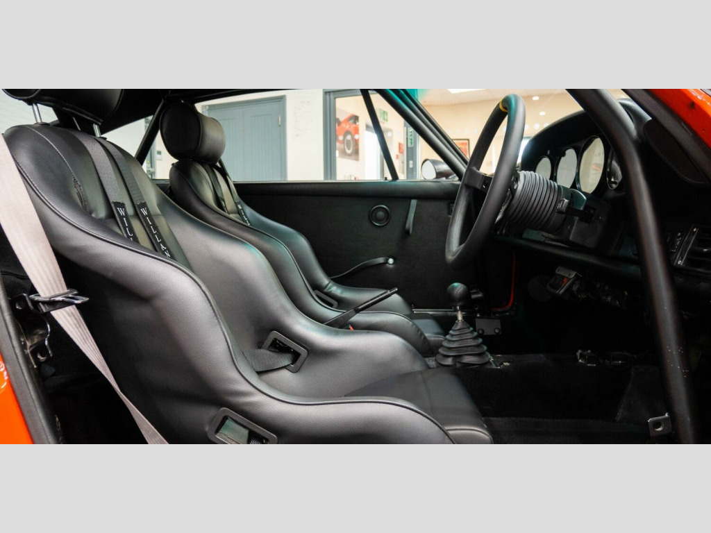 Here at Lakeside Classics we are very pleased to offer for sale this beautiful Porsche 911 3.0 RS IROC Evocation. This car has covered less than 3000 miles since its rebuild and is ready to be enjoyed by its next owner. This fine example is finished in the period colour combination of blood orange with black hide. , The donor car was carefully selected for this RS IROC build, with the chosen model being a C16 (UK) 1990 911 (964) Carrera 4. The 964 is believed by many to be be the best donor for Evocations and backdated cars as they offer the perfect blend of classic looks but also benefit from the advances in technology that the late air-cooled Porsches offered such as Power steering and ABS, however they are often not chosen due to the 964 values being so high compared to the earlier 911 alternatives such as the SC and 3.2 Carrera. , The body was stripped and rebuilt with full photographic records to IROC RS specification with steel arches. The removal of sound deadening and thick glue alone took two weeks. The car was married with a lightweight ducktail, front and rear bumpers and bespoke design Custom Cages full roll cage for safety. The aforementioned air conditioning and front oil coolers remain in original position leaving possibility for a large oil cooler in the front opening. Furthermore the car has been fitted with a Light Perlon carpet set, a racing Momo steering wheel and bucket seats helping to complete the feel of a true RS IROC inspired driving experience. The car has been fitted with lightweight doorcards and straps, echoing Ferdinand Porsches philosophy of the importance of the power to weight ratio that contributed to so much of Porsches success in this era. The 3.6 litre engine was rebuilt 60,000 miles ago and has been extremely well maintained since which is clearly evident by all of the invoices in the history file. , The car is complete with an extensive history file throughout the cars life as well as over £30,000 worth of invoices for the rebuild as well as a photographic history. Original manuals and booklets are also included in the sale. , Please contact us today for more information. Personalised video available on request. Finance available. Viewing By Appointment Only. , Lakeside Approved Pre Owned Cars. , Every vehicle that bears the Lakeside Approved Status has been professionally prepared by our highly qualified Technicians to the highest standards. Thanks to extensive documented vehicle history and Lakeside Classics Warranty, we ensure more than just certified quality. We create trust. , Our Commitment:, , - 6 Month Lakeside Classics Warranty*, - 12 Months MOT, - Minimum 90 Point Mechanical Inspection , - 360 Degree Interior & Exterior Inspection , - Independent History and Mileage Checks, - All routine servicing and maintenance due will have been carried out as a minimum. - Full Valet and Final Quality Inspection. , *Warranty does not cover wear and tear items.