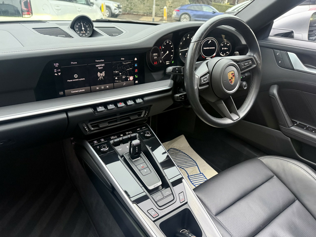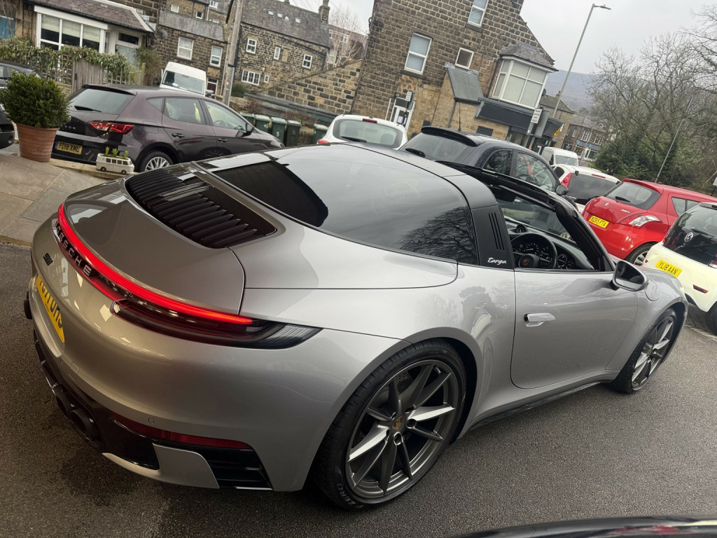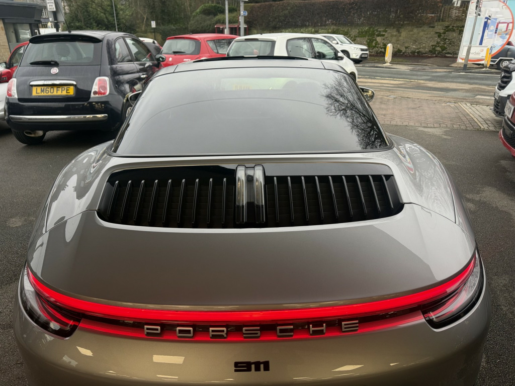 2021 (71) Porsche 911 992 Targa 4S PDK 3.0 T, , Finished in GT Silver with full Black leather electric sports seats with crayon stitching , , Only 12023 miles with full Porsche service history , will come freshly serviced from Porsche having had a full 2k service, , 1 local owner from new , , £12350 of Factory options inc :-, Rear Axle Steering , Sports tailpipes in Black , Black brake calipers, Power steering plus, Wheels in Satin Platinum , Sport design pack in gloss black , 911 logo in gloss black , Targa roll bar in Satin Black , Heated steering wheel , Porsche crest on headrests , Privacy glass , Brushed aluminium interior pack, Rear lid slats painted in black , Exterior mirror lower trims painted in GT silver , Electric folding exterior mirrors , Sport Chrono Pack, Exclusive design tail lights , Engine compartment lid in titanium grey, Auto dim mirrors , Light design pack, Porsche logo LED exterior courtesy lights , , Lovely condition throughout as to be expected