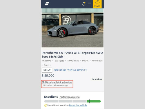 This 2023 Porsche 911 3.0T 992 4 GTS Targa PDK 4WD Euro 6 (s/s) 2dr Convertible is currently available for £125,000 in Canterbury Kent with Petrol engine and Auto Clutch Manual gearbox. For more information or to arrange a viewing, click here to send us an email using form below.